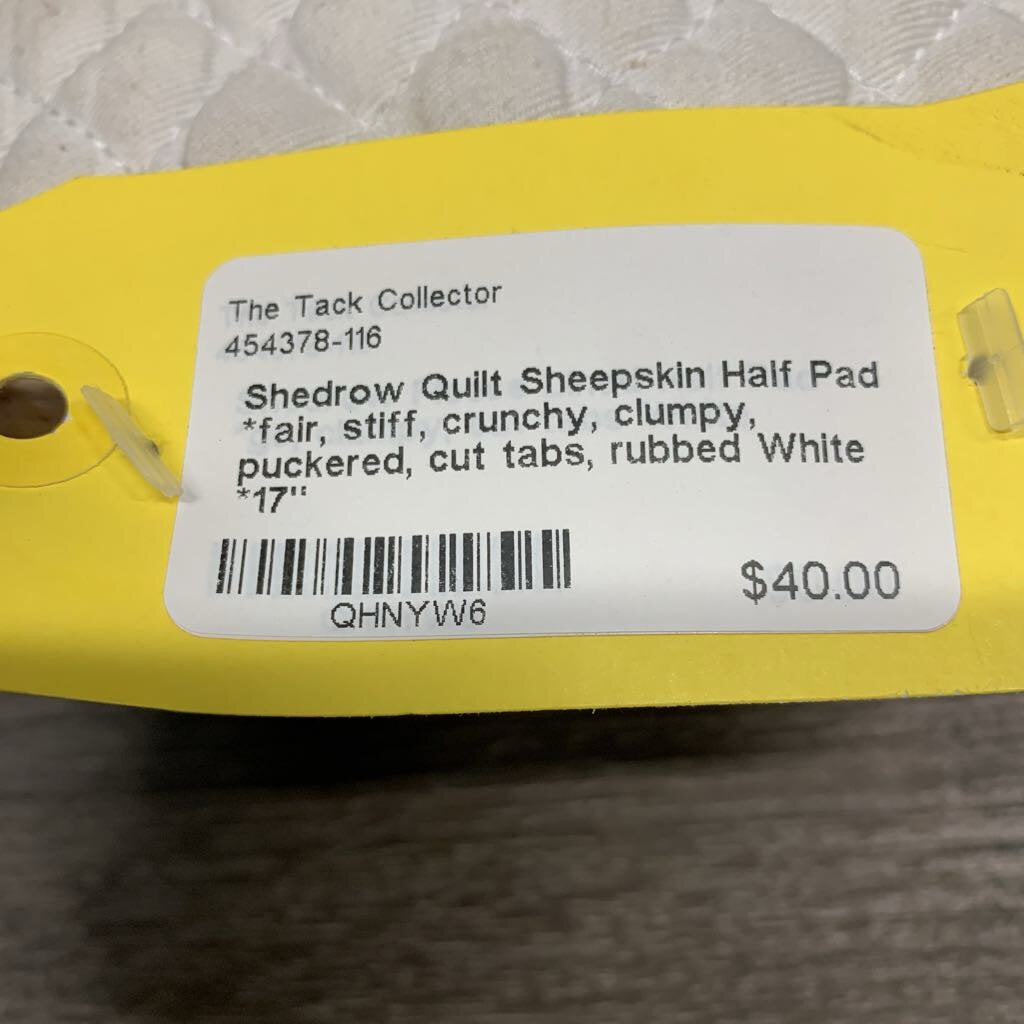 Quilt Sheepskin Half Pad *fair, stiff, crunchy, clumpy, puckered, cut tabs, rubbed