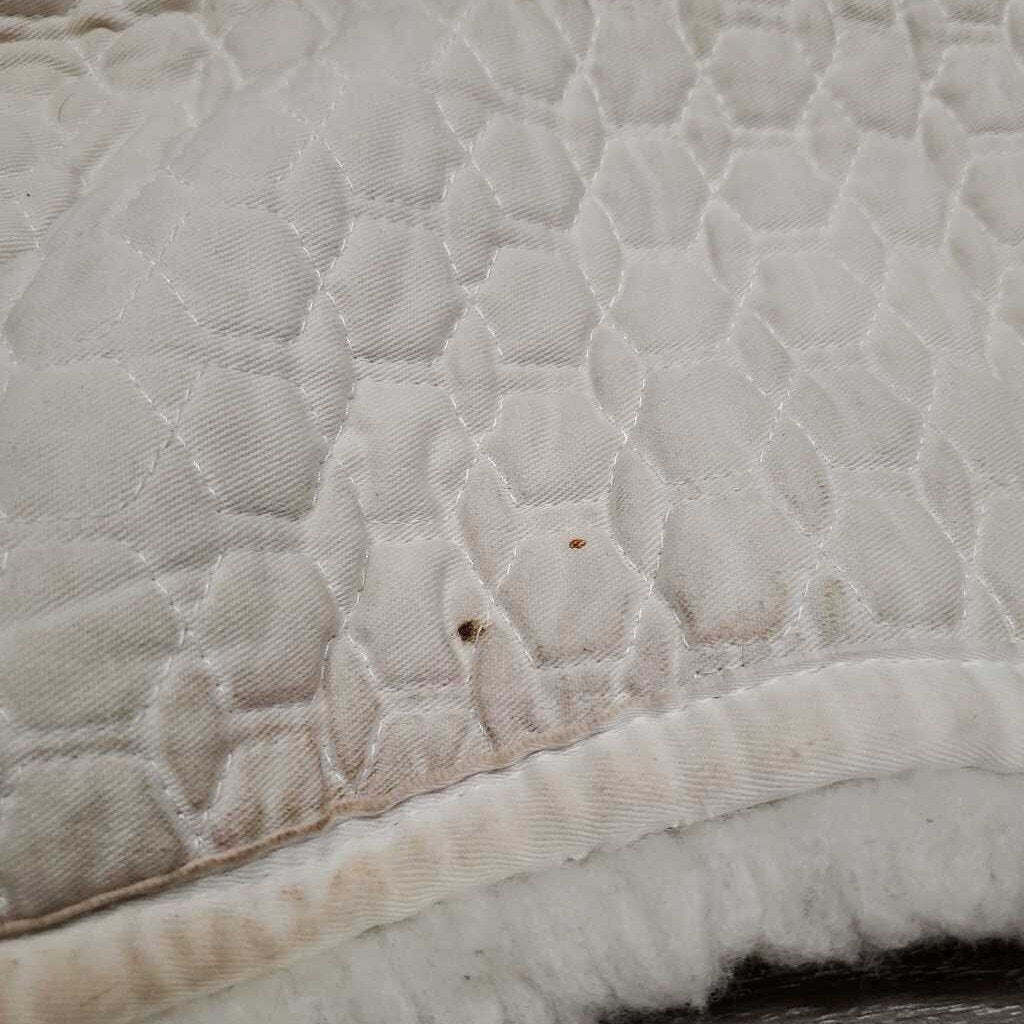 Quilt Sheepskin Half Pad *gc, clean, stains, crunchy, stiff, puckers, cut tabs, pills, mnr hair