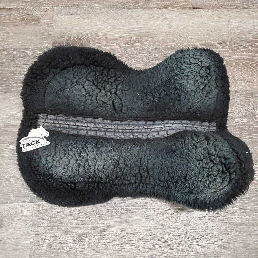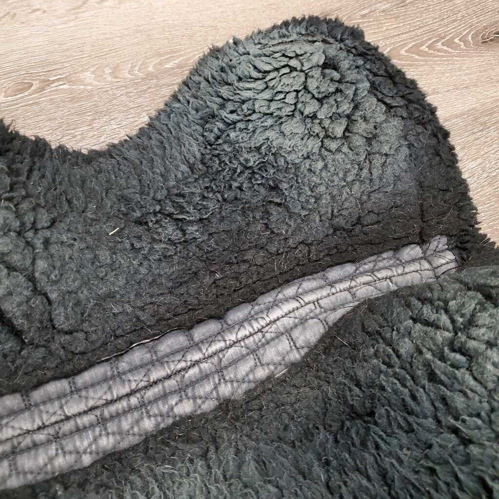 Quilt Sheepskin Half Pad, rolled edge *gc, clean, v. faded, stains, mnr hair, stiff, clumpy, rubs, hole
