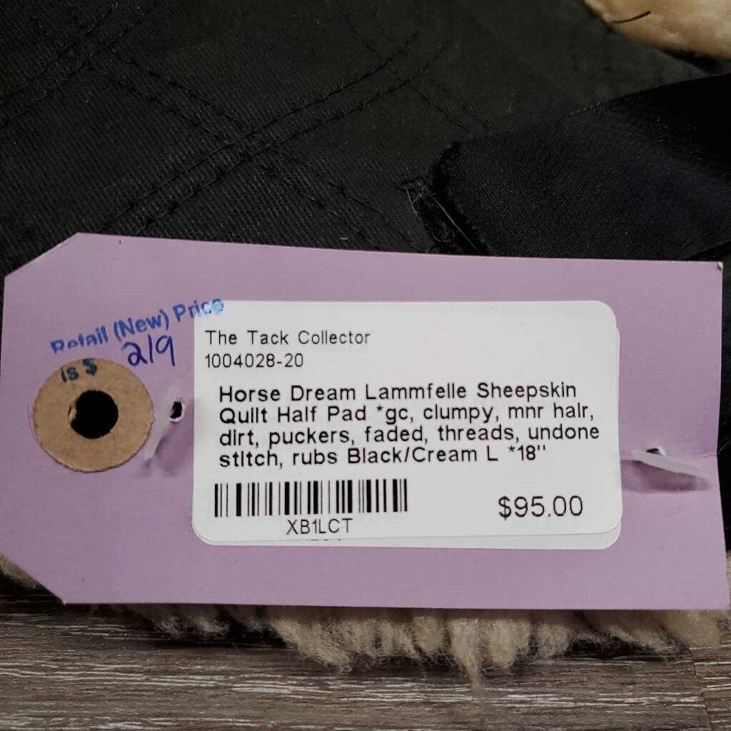 Sheepskin Quilt Half Pad, rolled edges *gc, clumpy, mnr hair, dirt, puckers, faded, threads, undone stitch, rubs