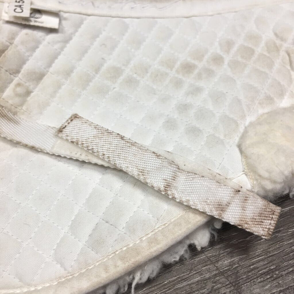 Sheepskin Quilt Half Pad, rolled edges *vgc, clean, v. clumpy, mnr stains, hair, threads
