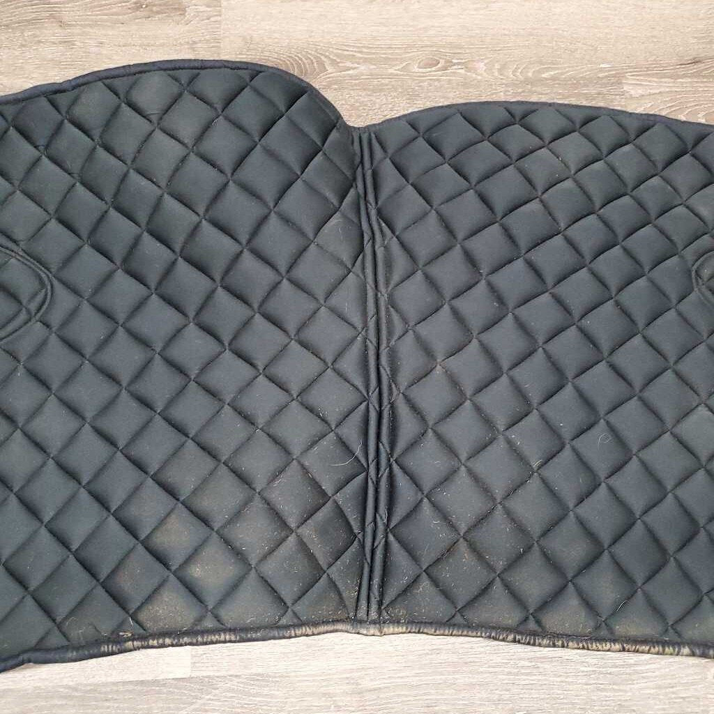 Satin Quilt Dressage Pad, 1x piping *gc, mnr hair, dirt, hay, puckers, curled edges, faded