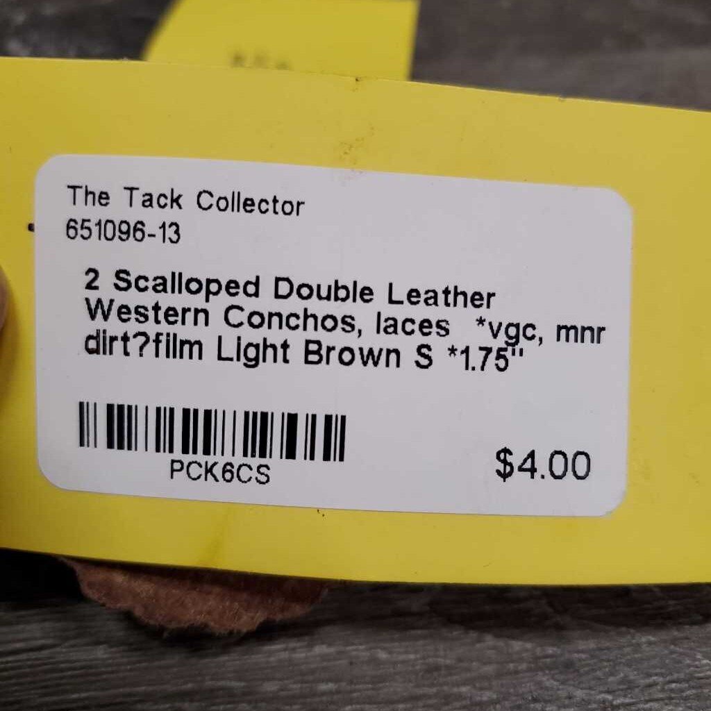 2 Scalloped Double Leather Western Conchos, laces *vgc, mnr dirt?film