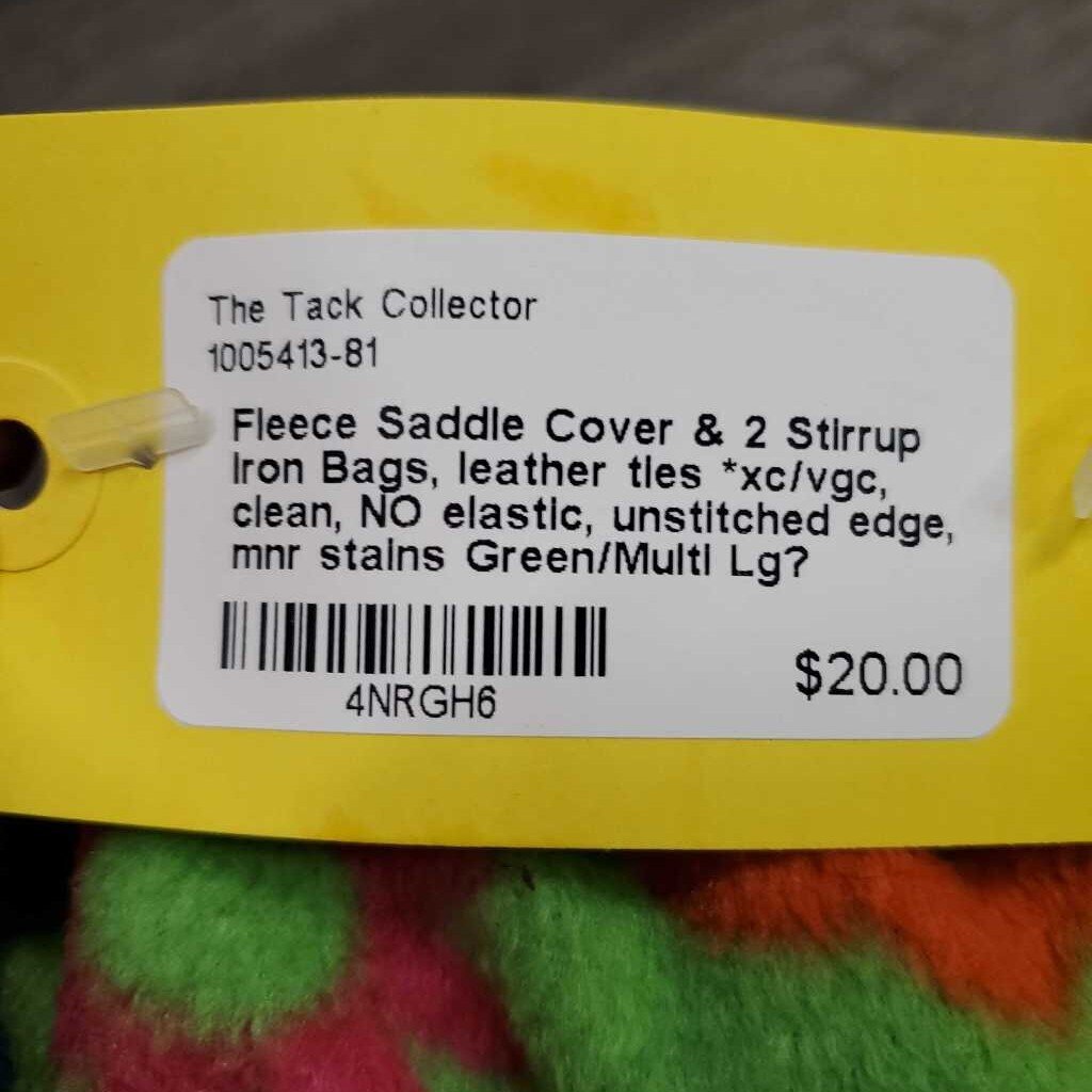 Fleece Saddle Cover & 2 Stirrup Iron Bags, leather ties *xc/vgc, clean, NO elastic, unstitched edge, mnr stains