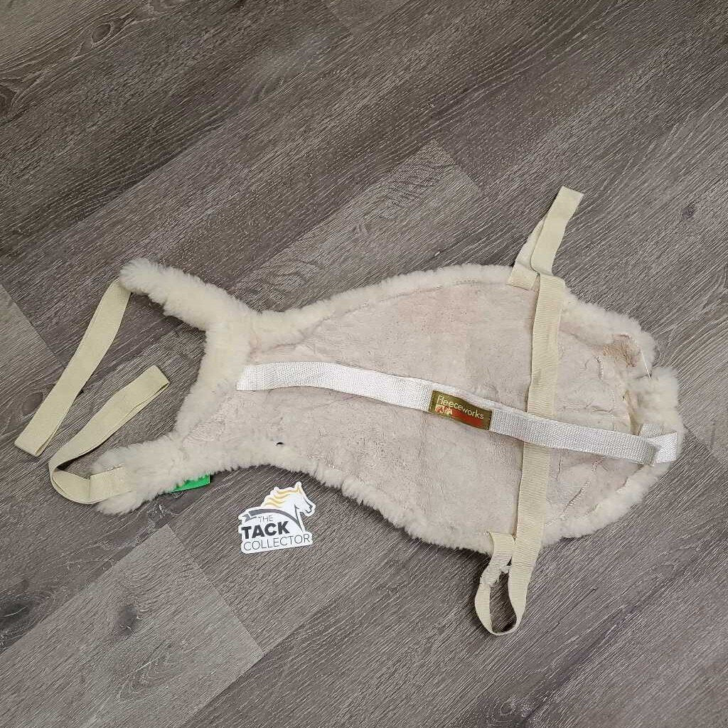 Sheepskin Jump Saddle Seat Saver *gc, clean, clumpy, rubs, mnr hairy, stretched elastic, older, stiff