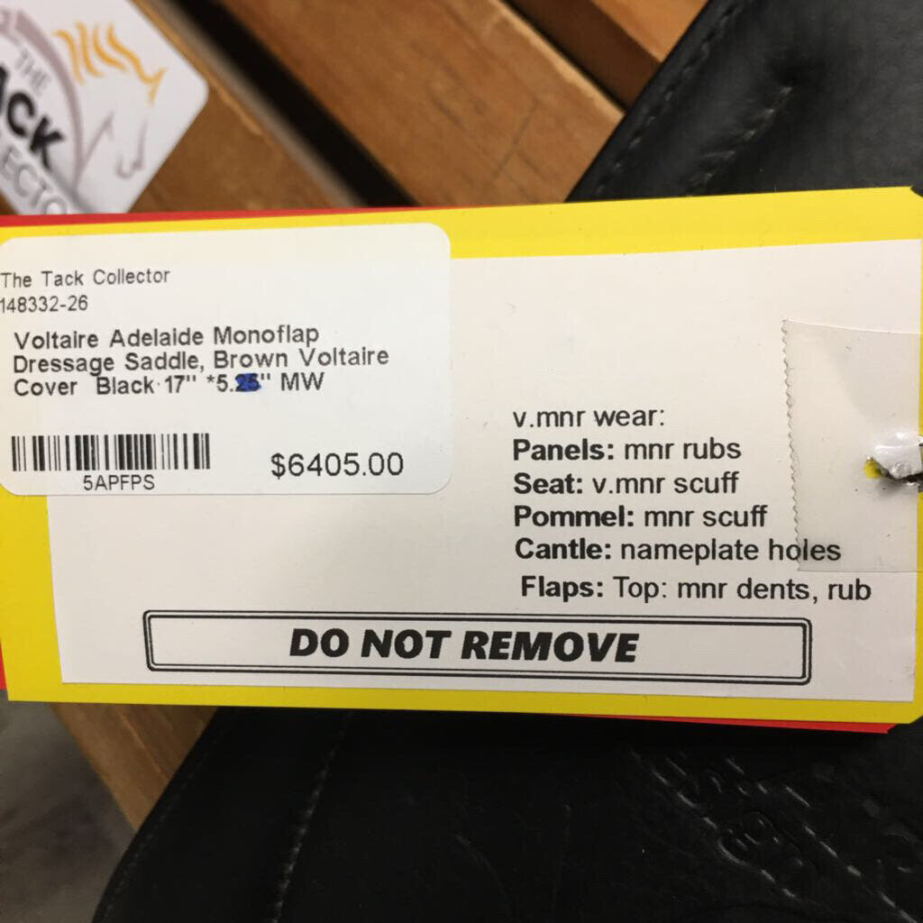 17" *5.25" MW Voltaire Adelaide Monoflap Dressage Saddle, Brown Voltaire Cover, Xlg Front Blocks, Foam Panels, Flaps: 16"L x 13.5"W Serial #: 1448 16 17 3A 3S FIN