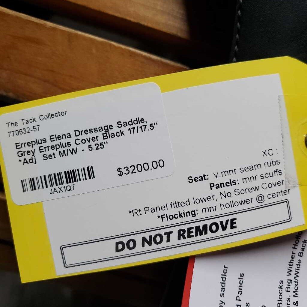 17/17.5" *Adj Set M/W - 5.25" Erreplus Elena Dressage Saddle, Grey Erreplus Cover, Wool Flocking, XLg Exterior Front Blocks, Flaps: 17.5"L x 11"W Serial #: 160509772BMAO