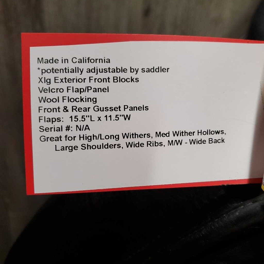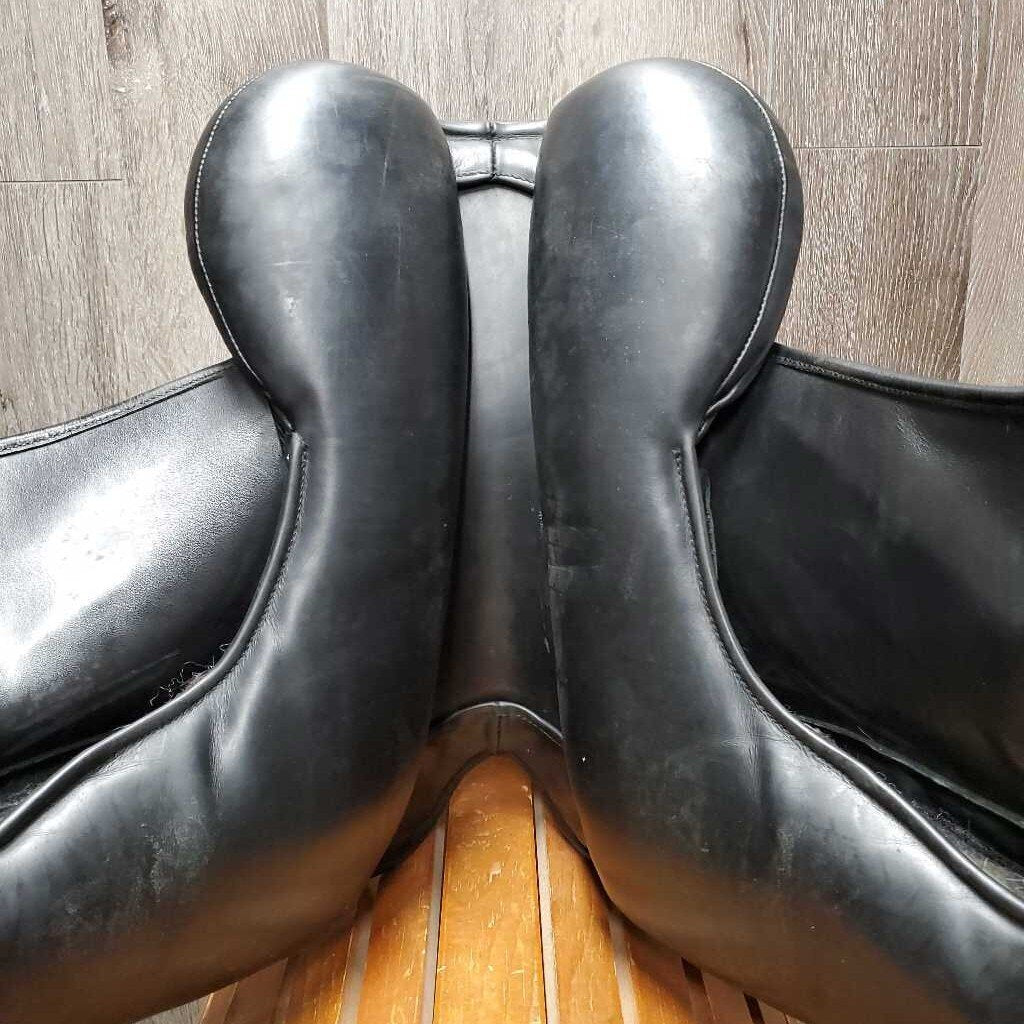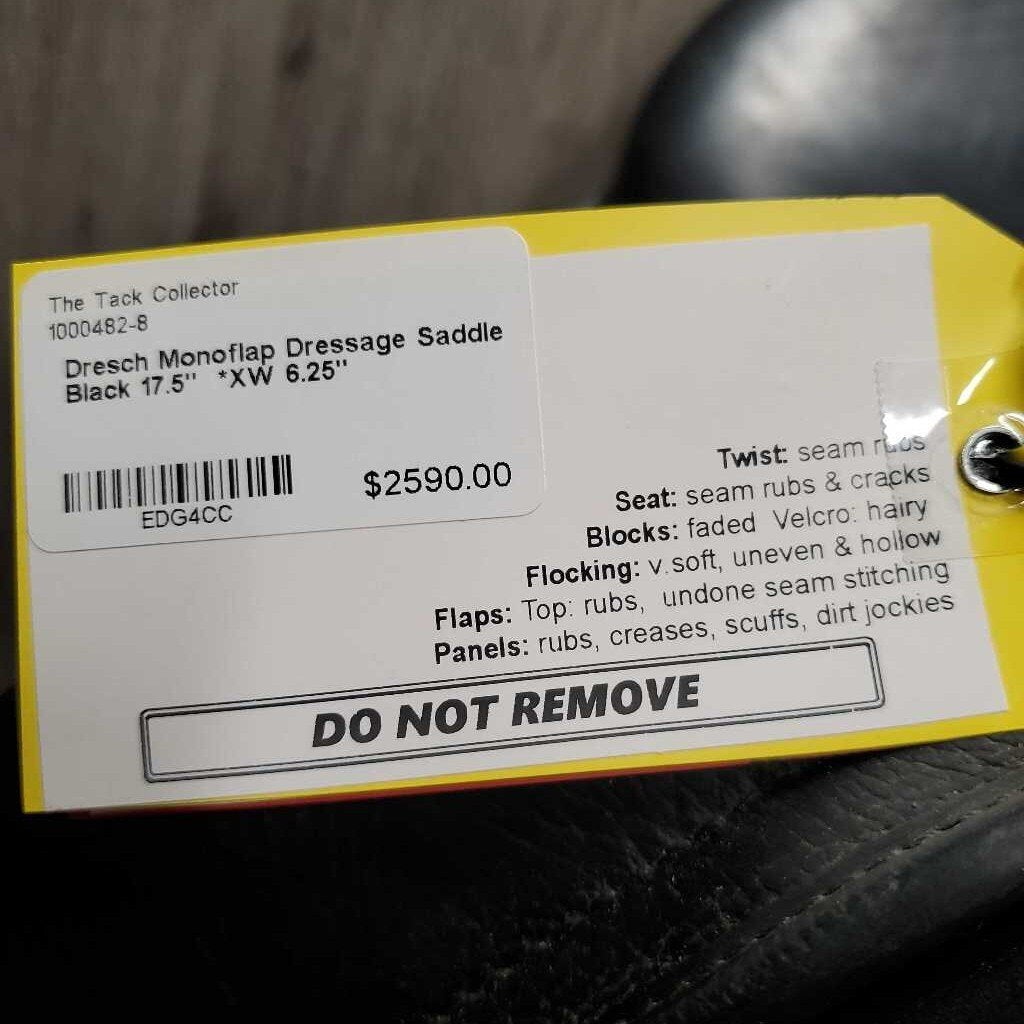17.5" *XW 6.25" Dresch Monoflap Dressage Saddle, Xlg Exterior Front Blocks, Velcro Flap/Panel, Wool Flocking, Front & Rear Gusset Panels, Flaps: 15.5"L x 11.5"W Serial #: N/A