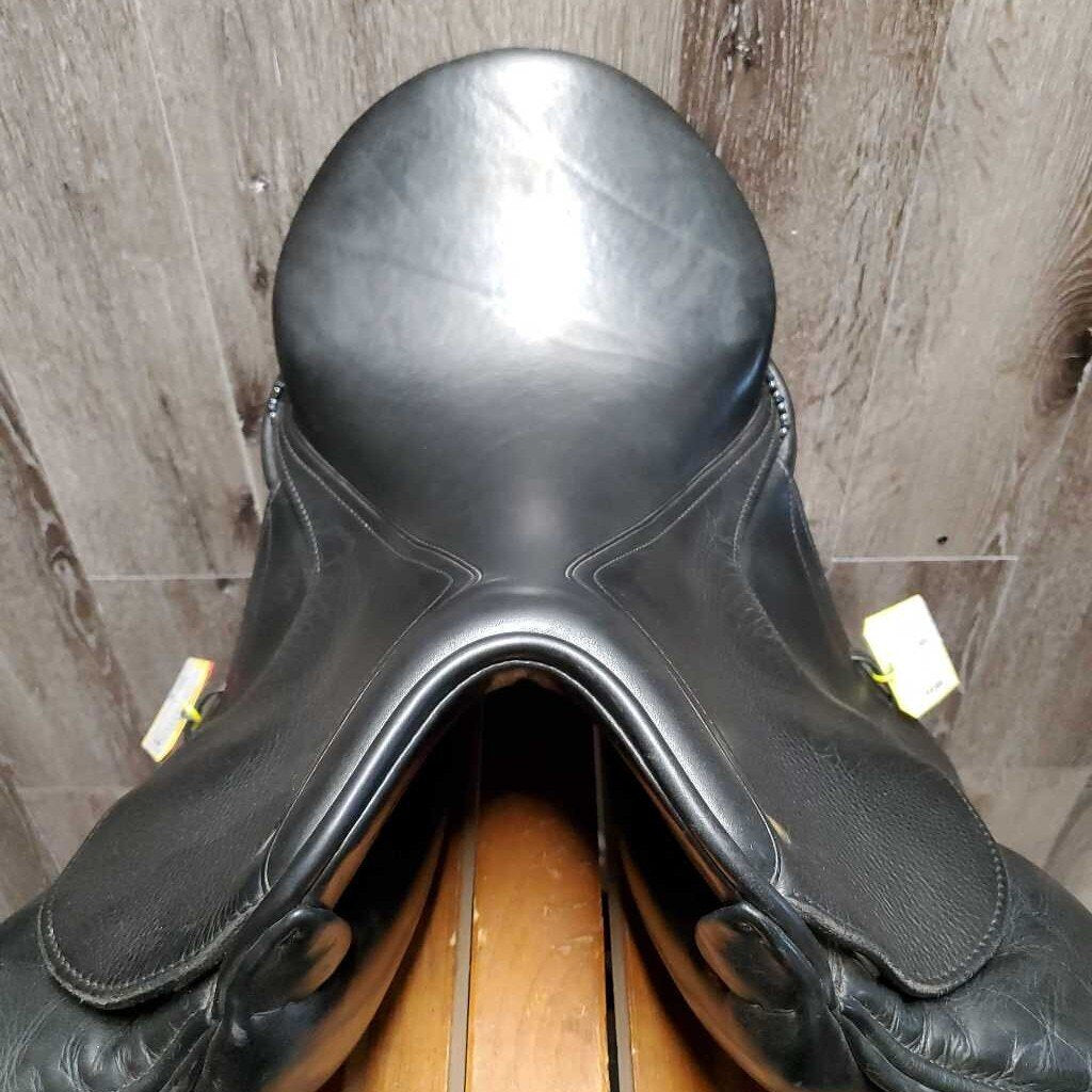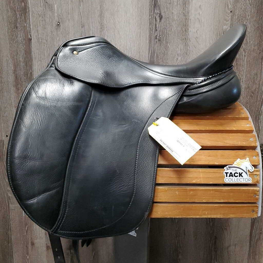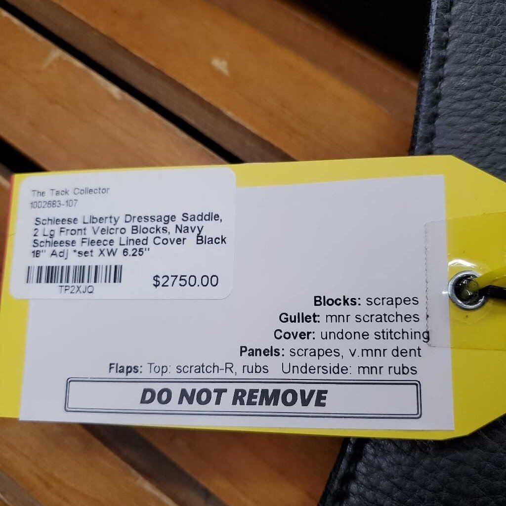 18" Adj *set XW 6.25" Schleese Liberty Dressage Saddle, 2 Lg Front Velcro Blocks, Navy Schleese Fleece Lined Cover, Cutback Pommel, Shoulder Relief Panels, Rear Gussets, Wool Flocking, Flaps: 17"L x 12.5"W Serial #: 3 HW SR 4-18 10366S0411