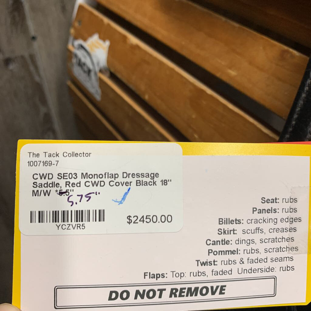 18" M/W *5.5" CWD SE03 Monoflap Dressage Saddle, Red CWD Cover, Foam Panels, Thick High Back Panels, XLg External Front Blocks, Flaps: 17.5" x 10" Serial # SE03 18 4L PA715210505 10-8512RT