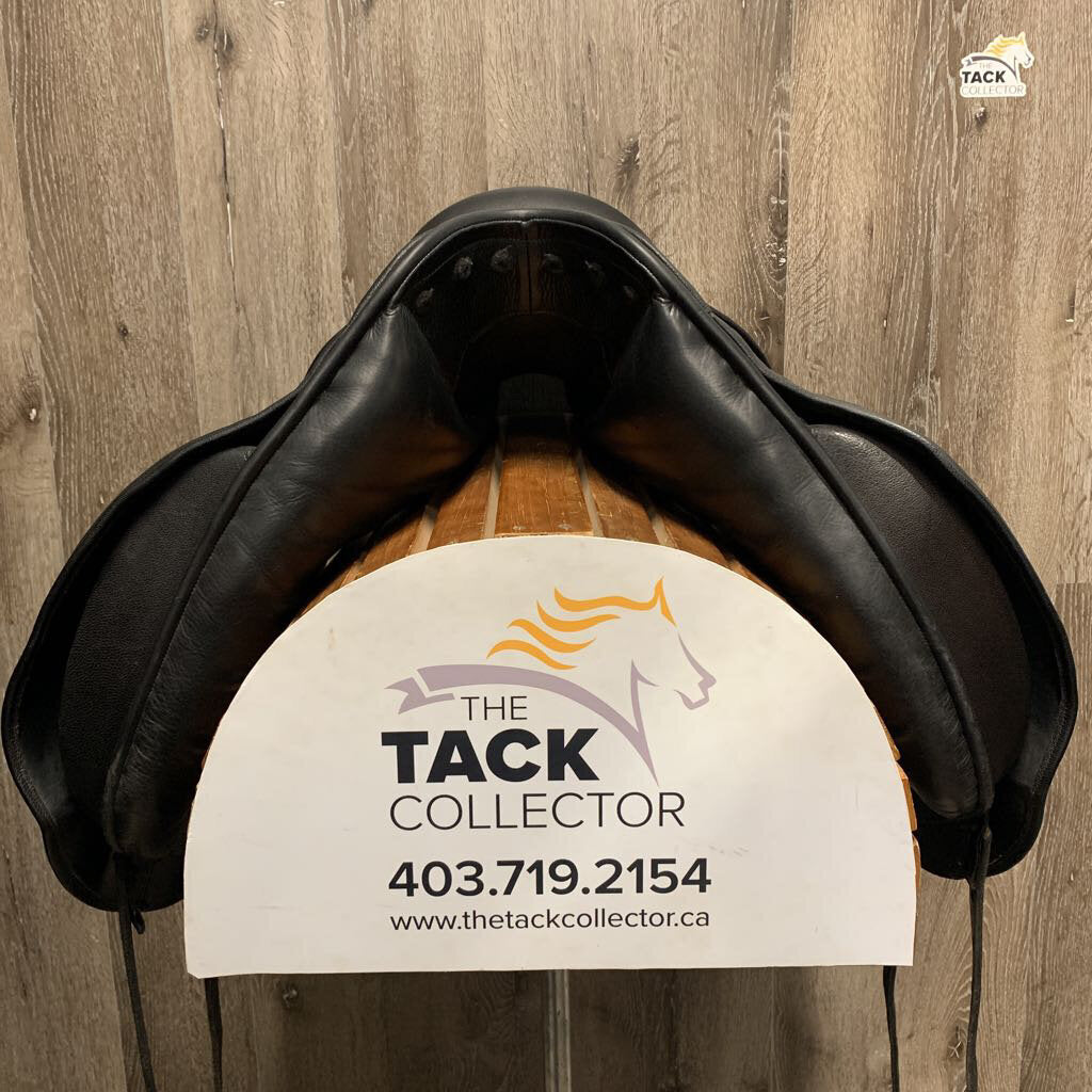 18" MW *5.5" Frank Baines Dressage Saddle, Blue Cotton Frank Baines Cover, Lg Front Blocks, Wool Flocking, Rear Gusset Panels, Flaps: 16.5"L x 14"W Serial # 18 MW 12288