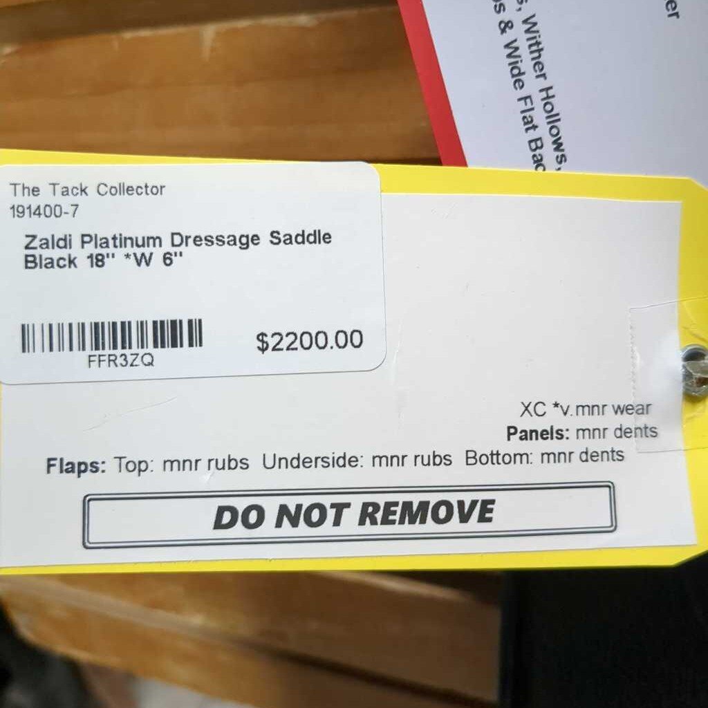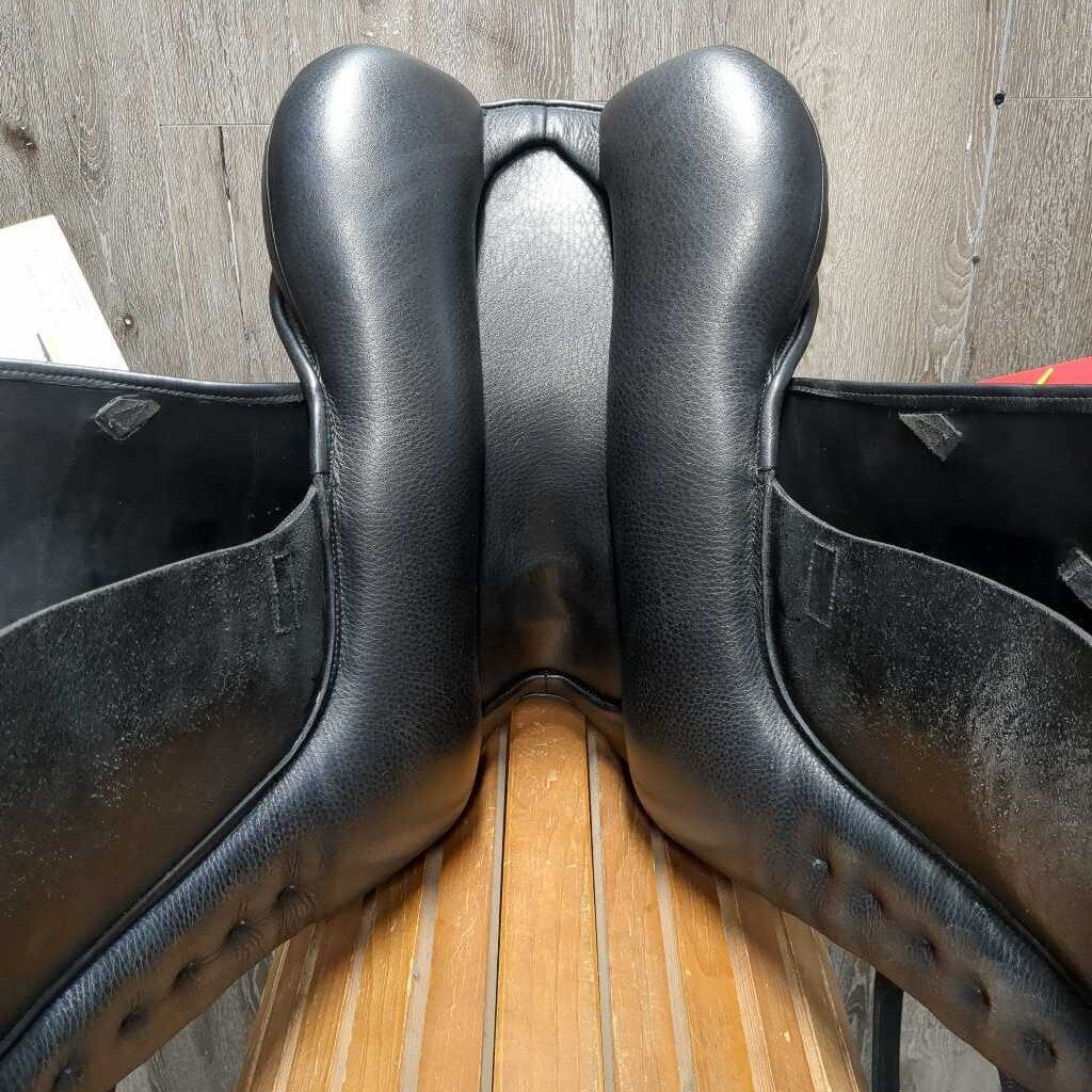 18" *W 6" Zaldi Platinum Dressage Saddle, XL Front Exterior Block, Wool Flocking, Rear Gusset Panels, Padded Seat, Flaps: 17"L x 10"W Serial # 201 426 18 32