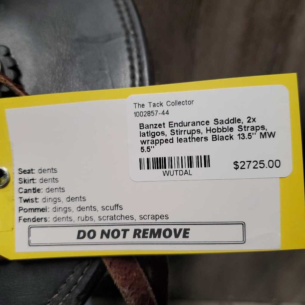 13.5" MW 5.5" Banzet Endurance Saddle, 2x latigos, Stirrups, Hobble Straps, wrapped leathers