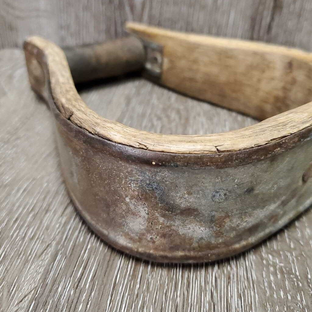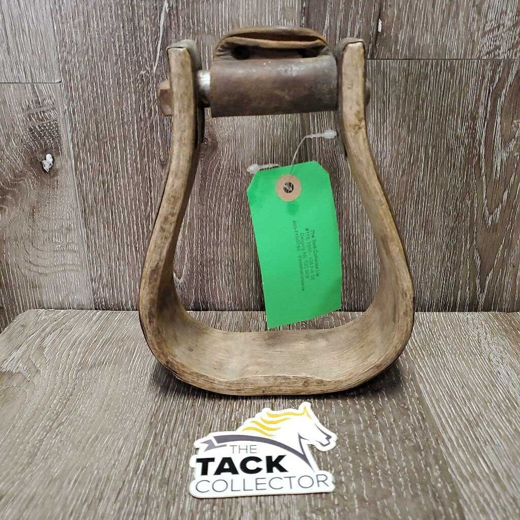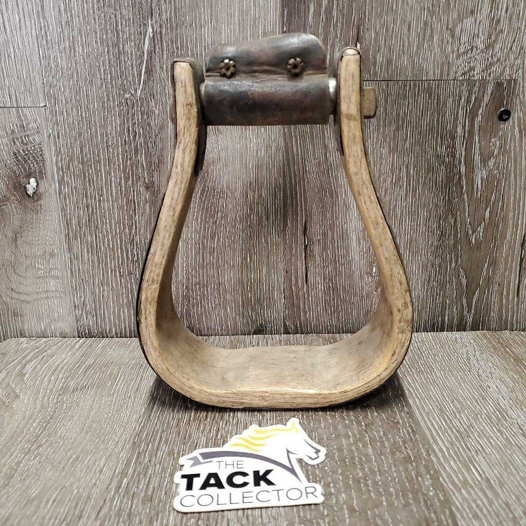 1 ONLY Wood/Metal Side Western Stirrup *gc/fair, scraped, older, stains, falling off leather top, rusty
