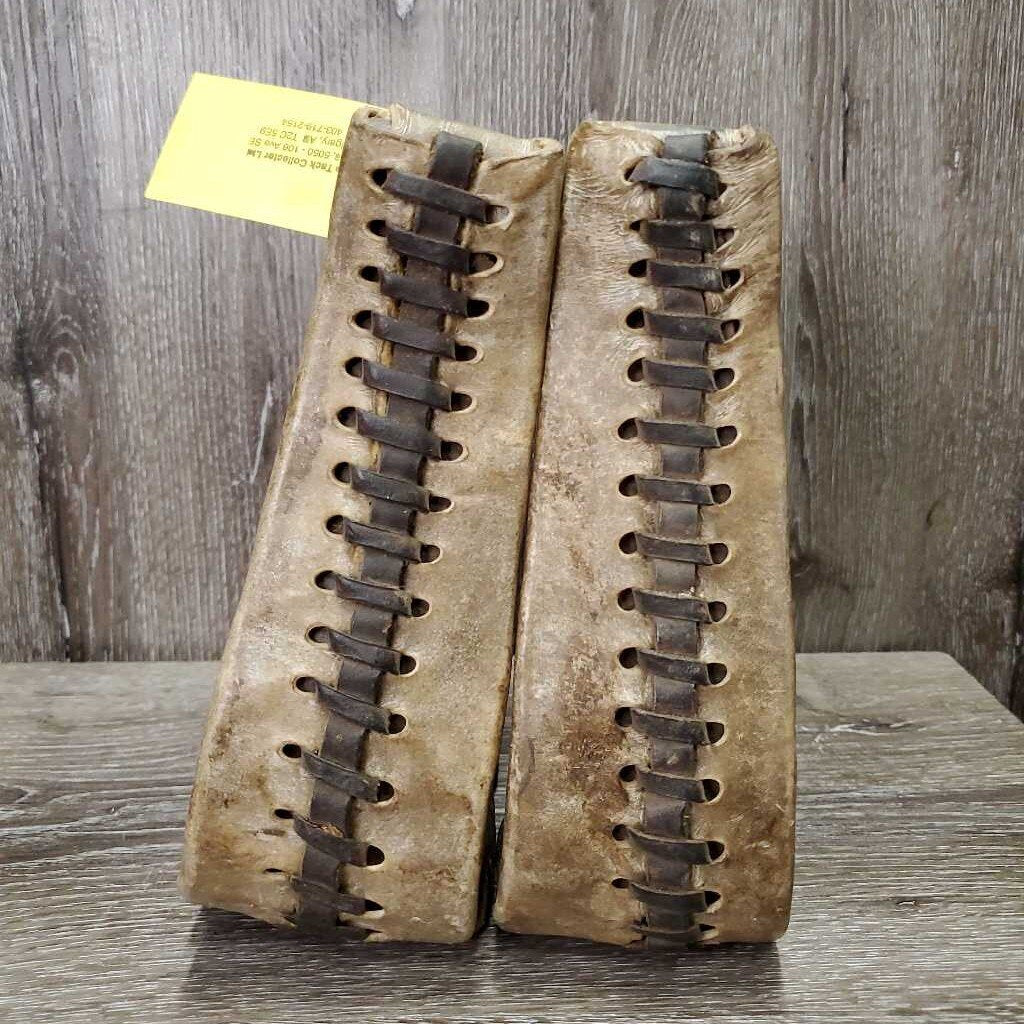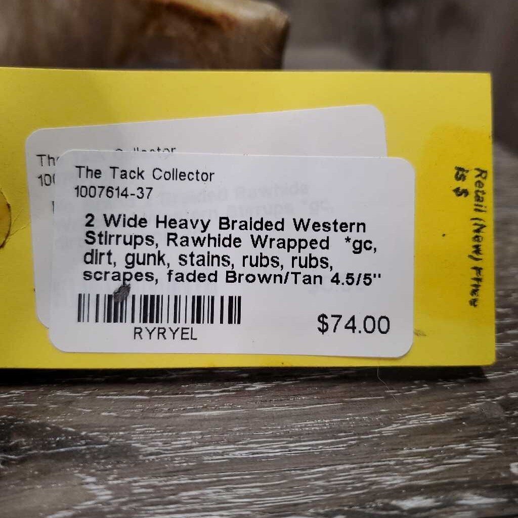 2 Wide Heavy Braided Western Stirrups, Rawhide Wrapped *gc, dirt, gunk, stains, rubs, rubs, scrapes, faded