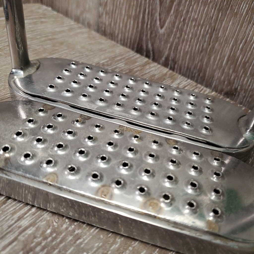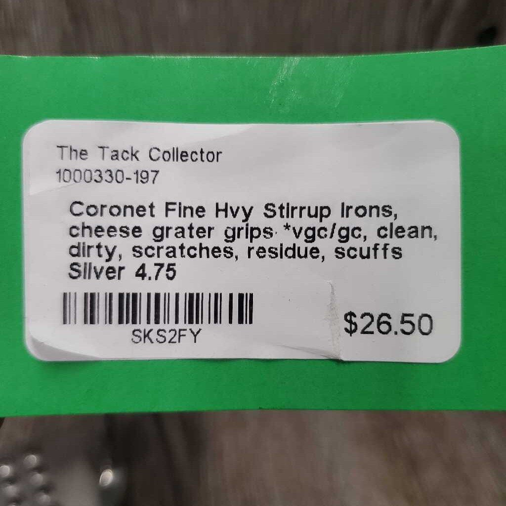 Fine Hvy Stirrup Irons, cheese grater grips *vgc/gc, clean, dirty, scratches, residue, scuffs