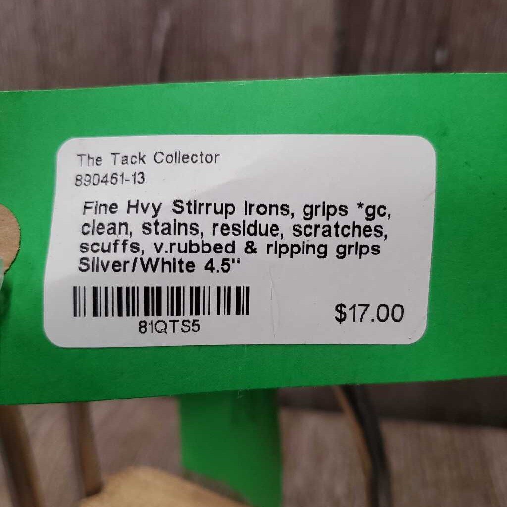 Fine Hvy Stirrup Irons, grips *gc, clean, stains, residue, scratches, scuffs, v.rubbed & ripping grips