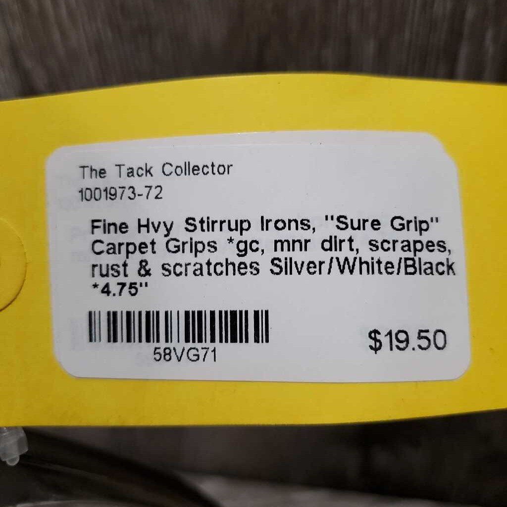 Fine Hvy Stirrup Irons, "Sure Grip" Carpet Grips *gc, mnr dirt, scrapes, rust & scratches