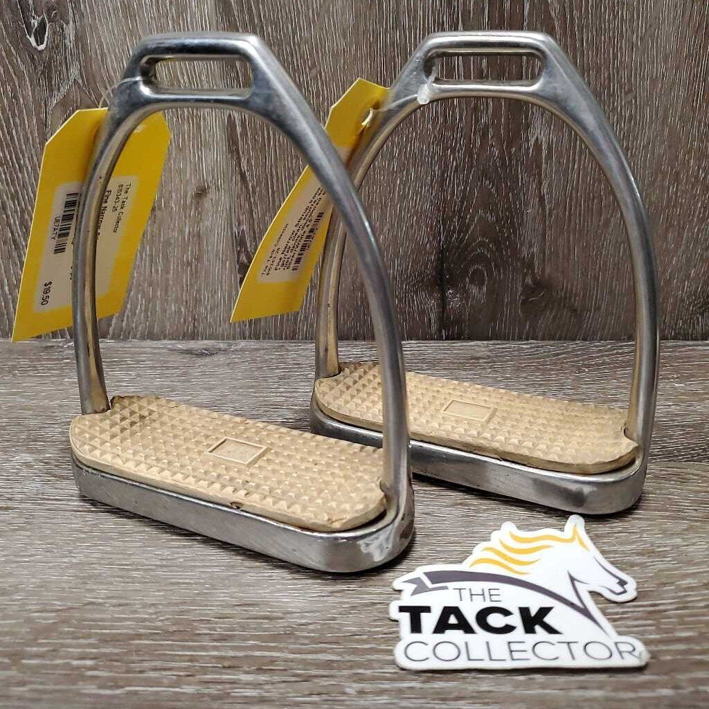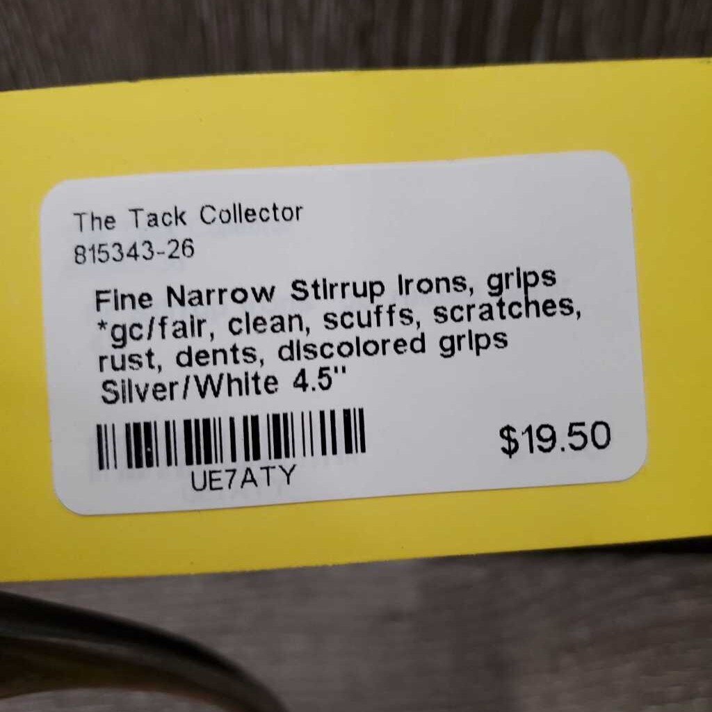 Fine Narrow Stirrup Irons, grips *gc/fair, clean, scuffs, scratches, rust, dents, discolored grips