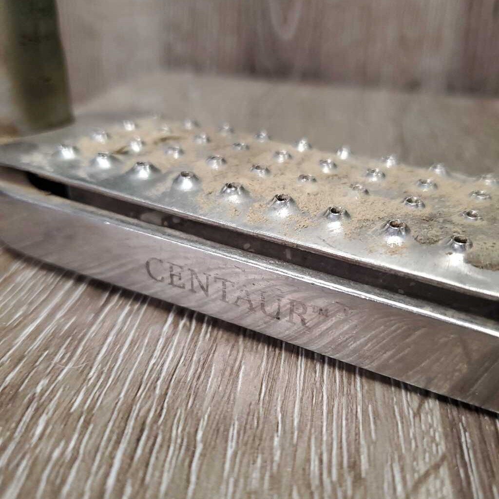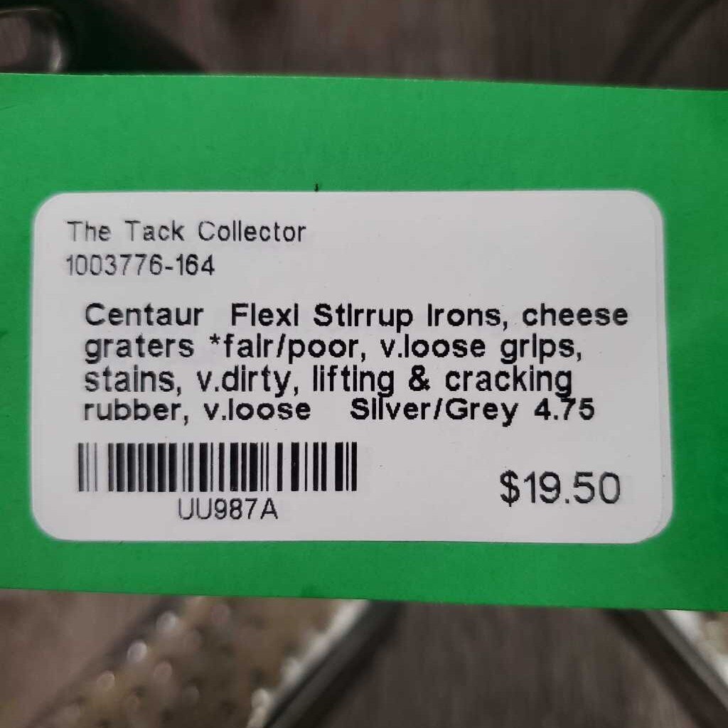 Flexi Stirrup Irons, cheese graters *fair/poor, v.loose grips, stains, v.dirty, lifting & cracking rubber, v.loose