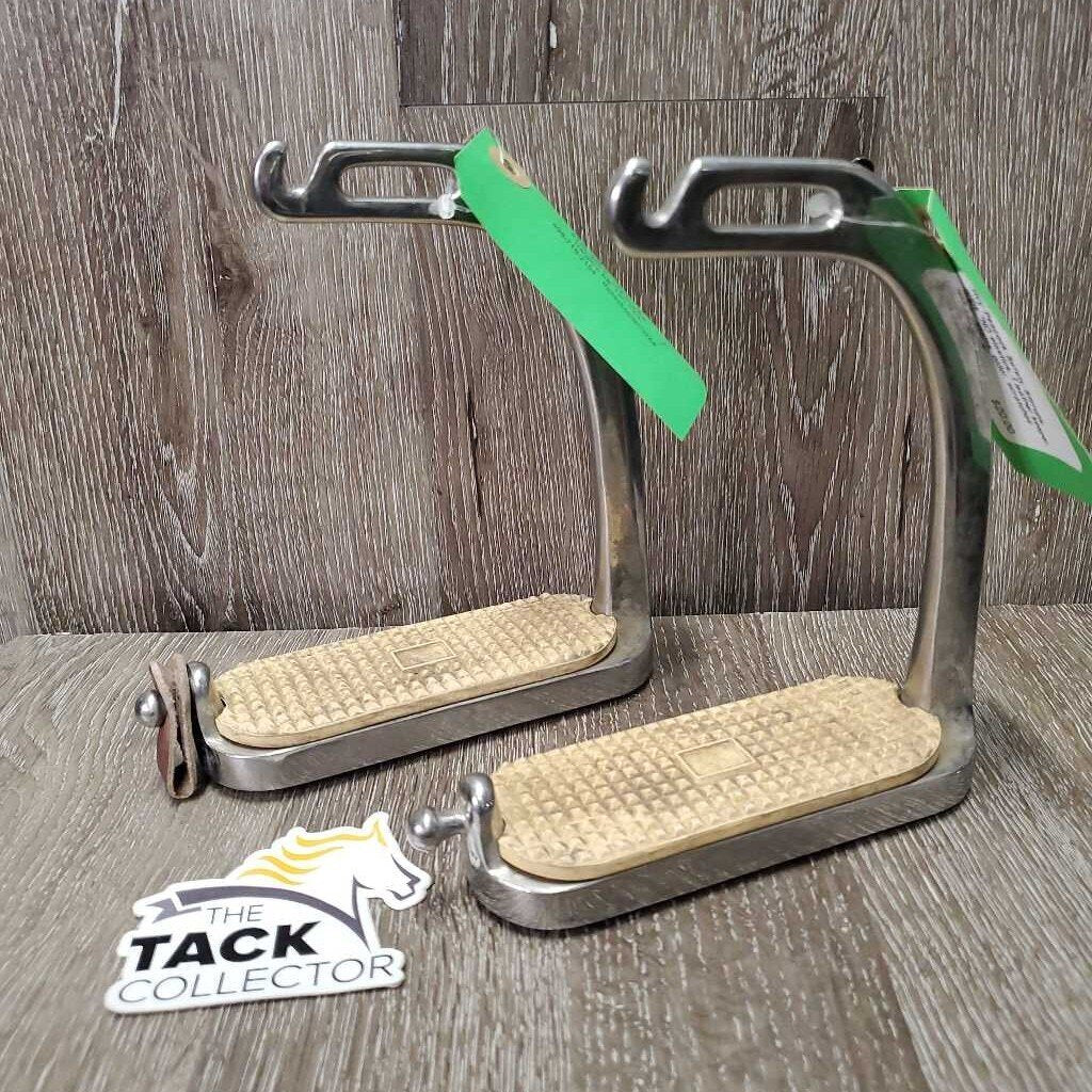 Hvy Peacock Safety Stirrups, grips *NO elastics, 1 leather keeper, v.dirty, stains, older, scratches