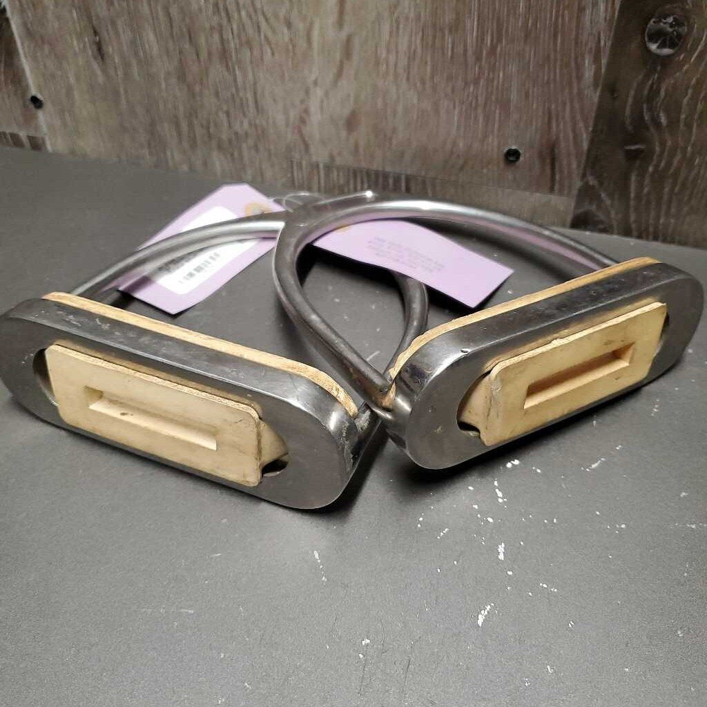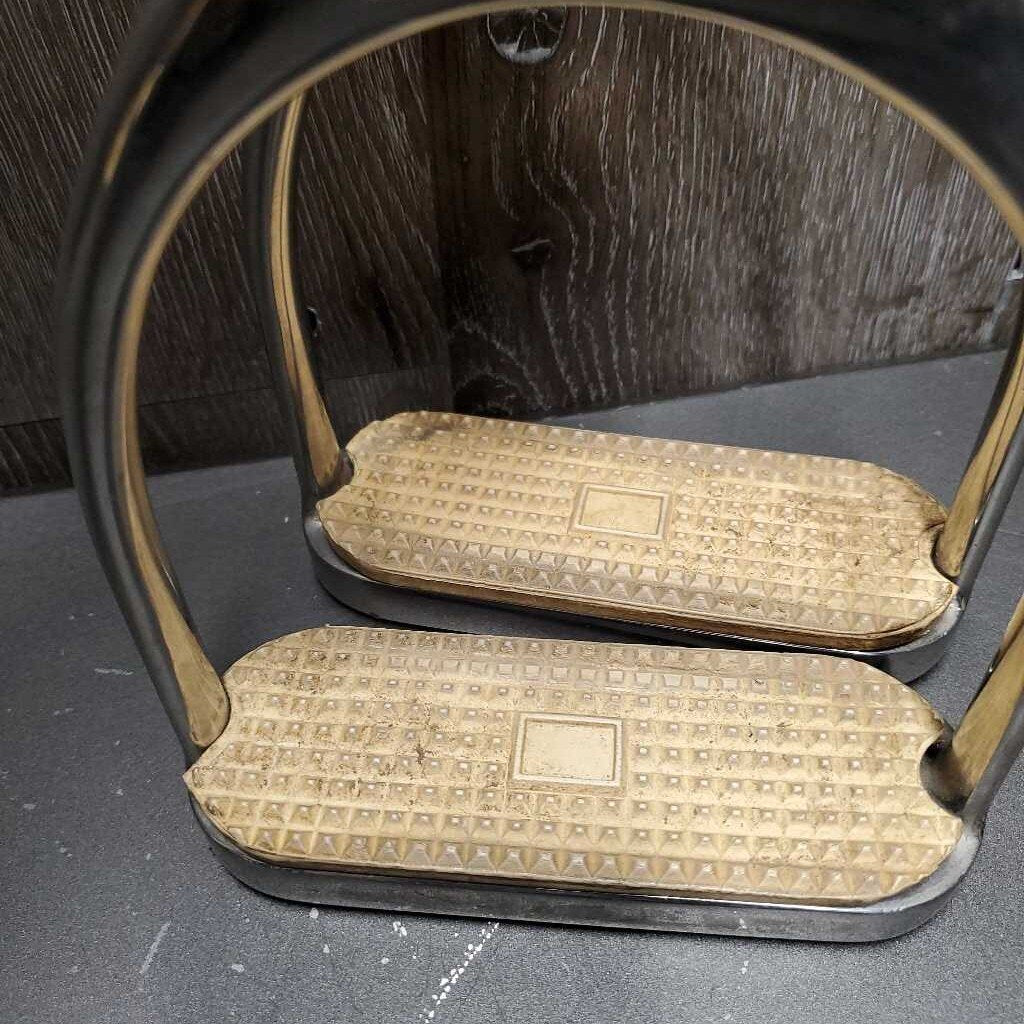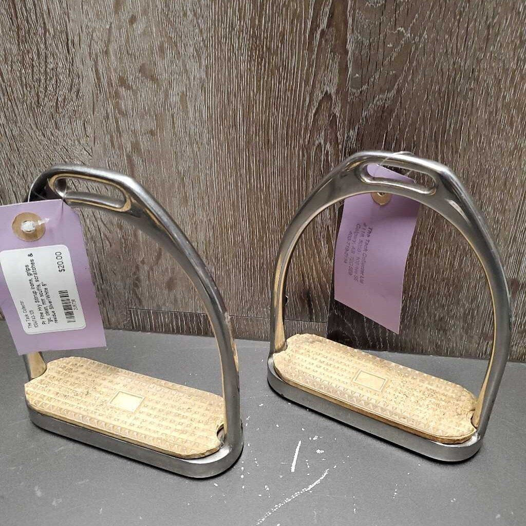Pr Fine Hvy Stirrup Irons, grips *gc, clean, mnr scuffs, scratches & residue