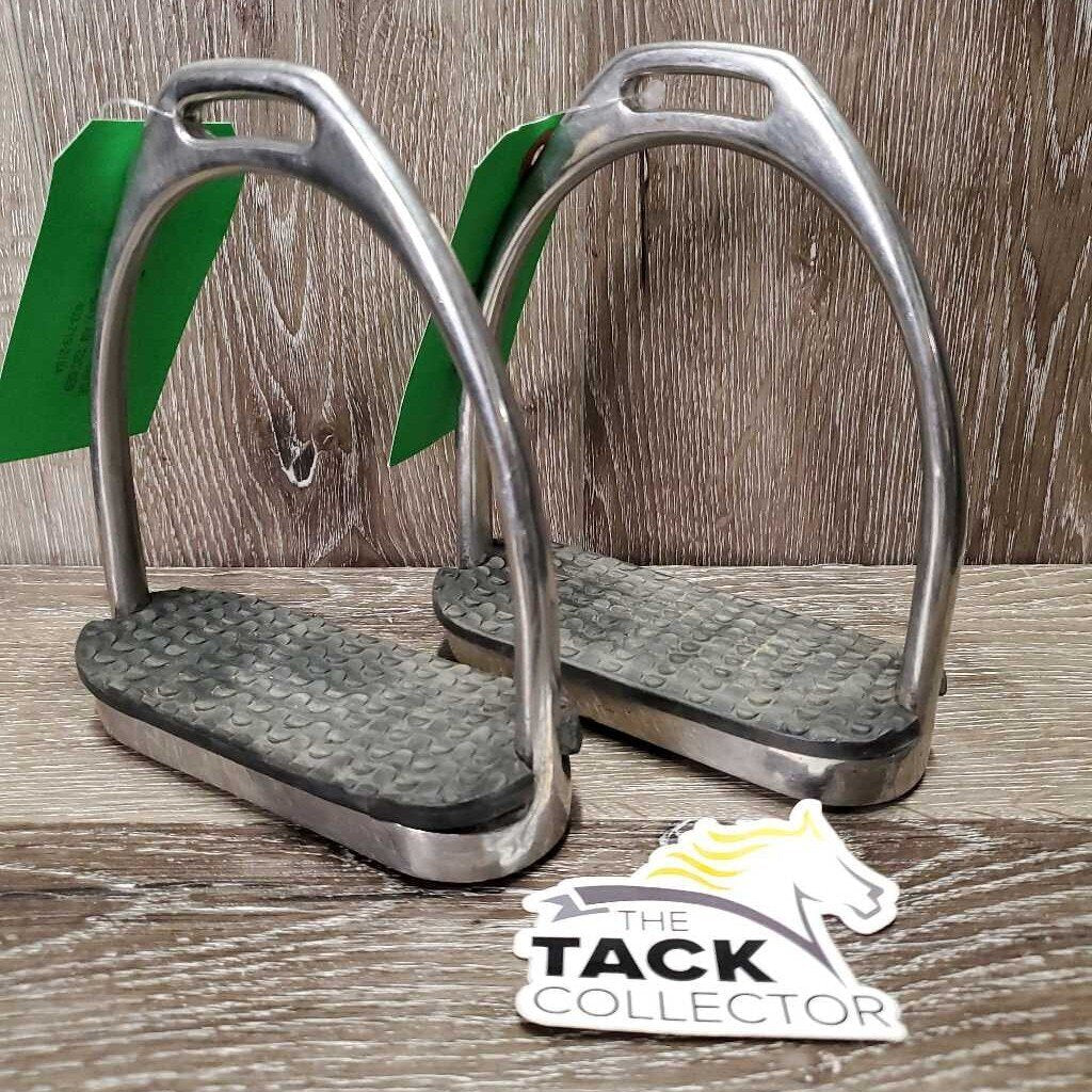 Pr Fine Hvy Stirrup Irons, grips *gc, mnr scratches, clean, stains, too big grips