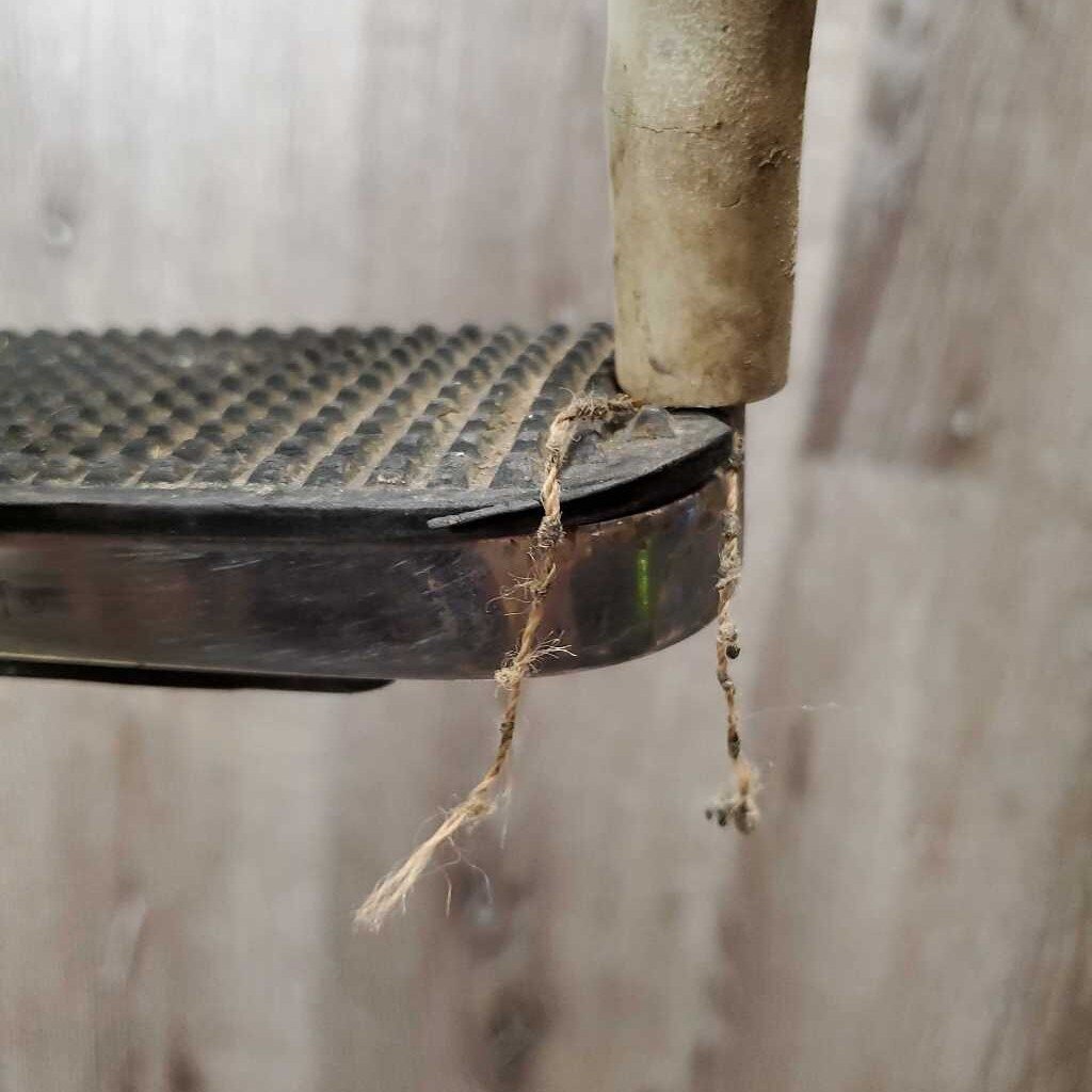 Pr Flexi Stirrup Irons, grips *fair, stained, dry/broken rubber, dirty, squeaky