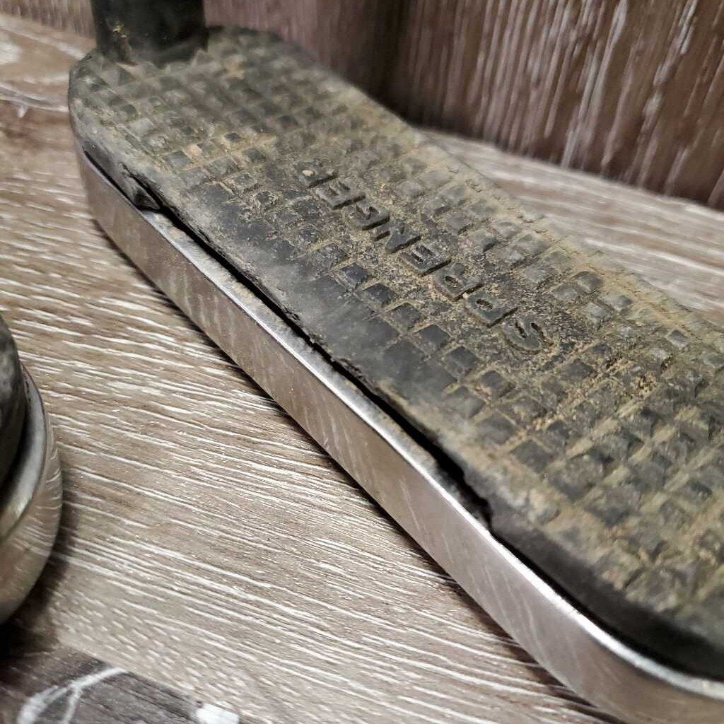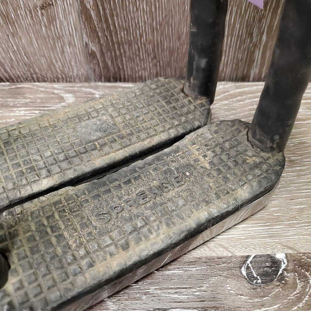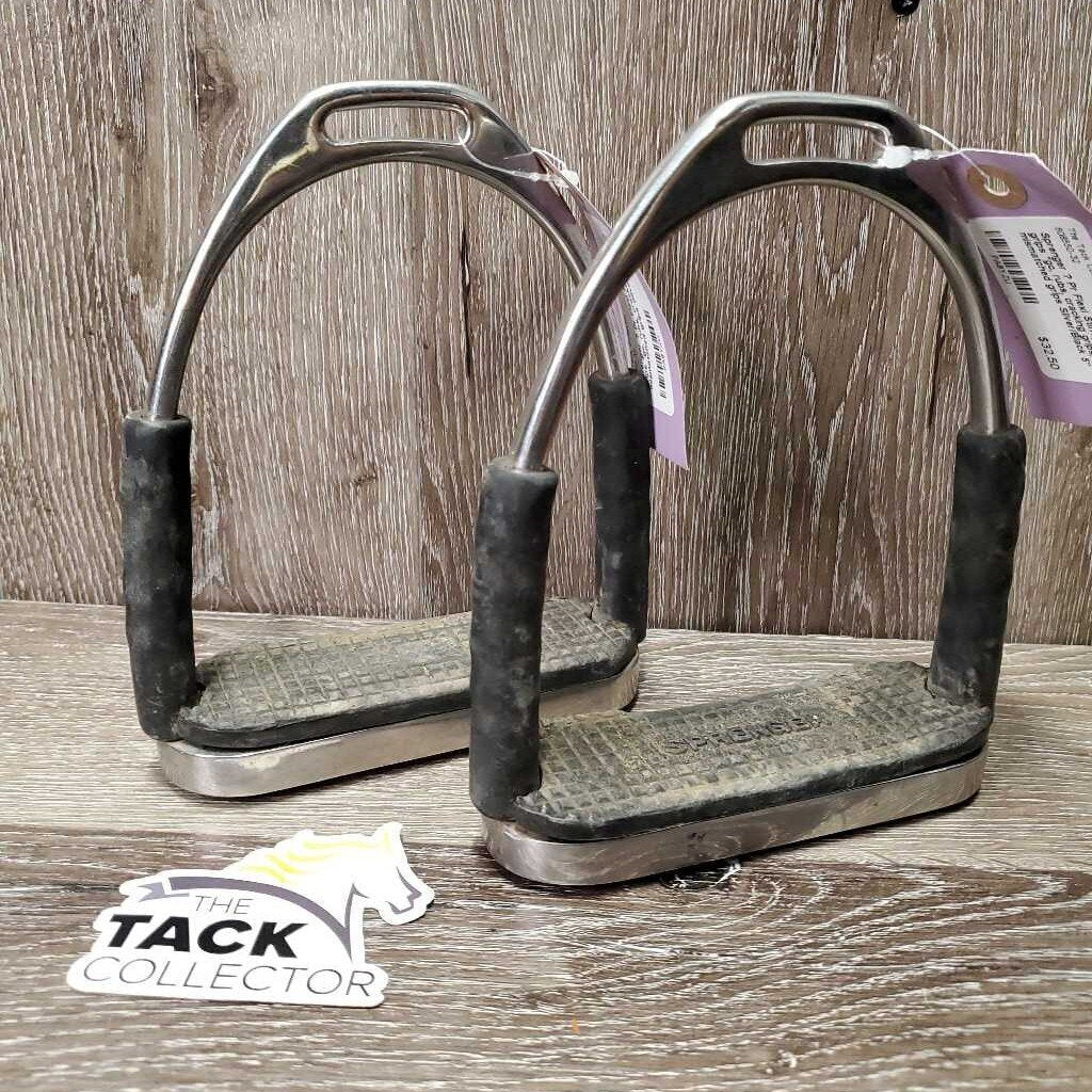 Pr Flexi Stirrup Irons, grips *gc, rubs, cracking grips, dirty, mismatched grips