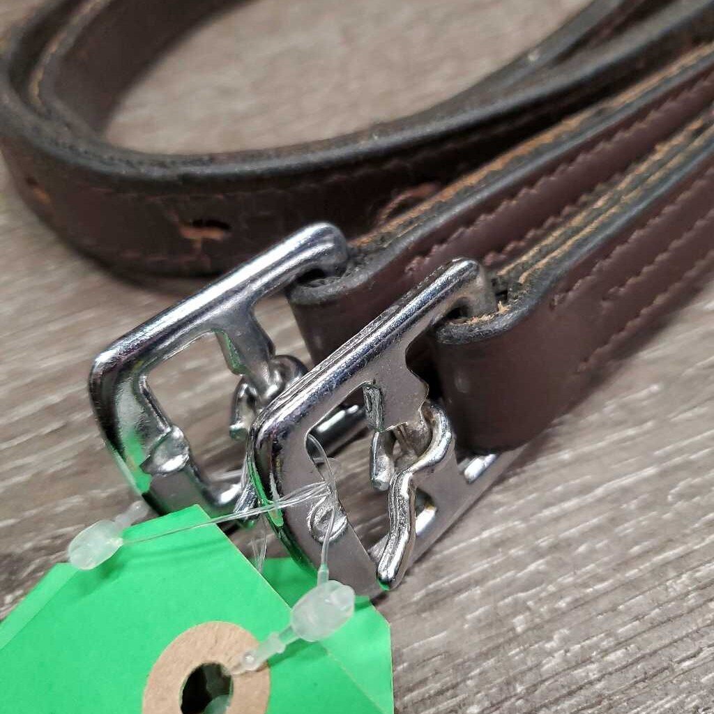Pr Narrow Nylon Lined Stirrup Leathers *vgc, dents, edge scrapes, mnr stains & threads, .5" uneven