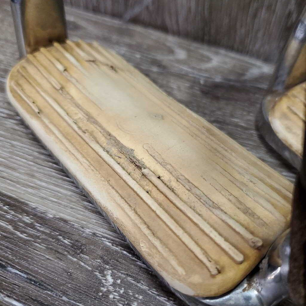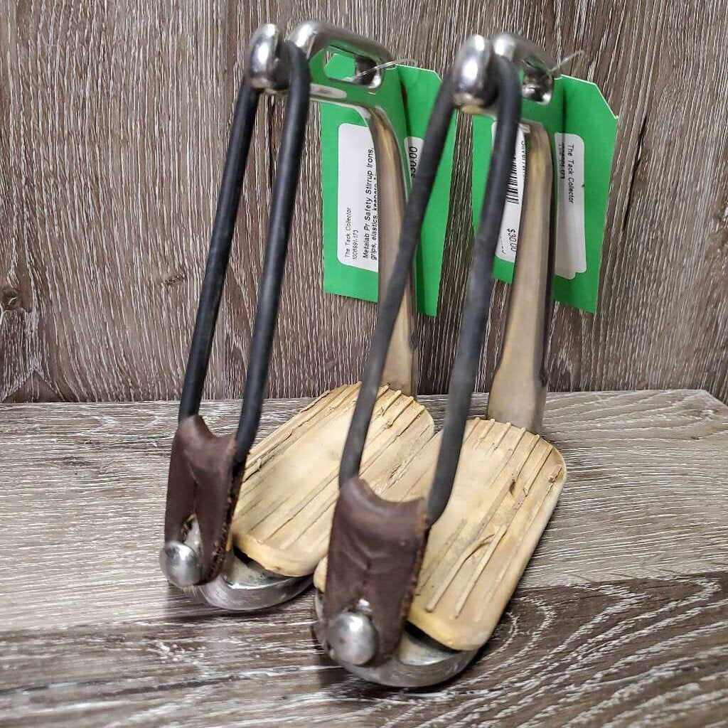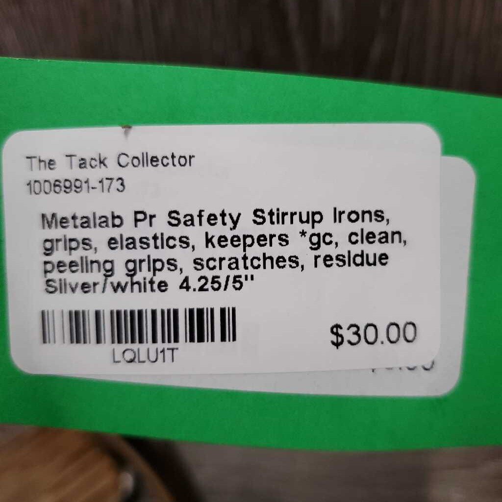 Pr Safety Stirrup Irons, grips, elastics, keepers *gc, clean, peeling grips, scratches, residue