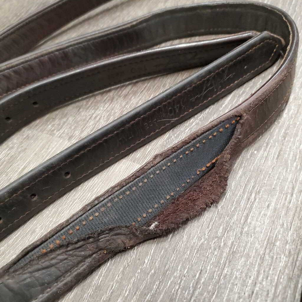 Pr Soft Nylon Lined Stirrup Leathers *fair, v.TORN, rubbed & undone seams, stains, dents, threads