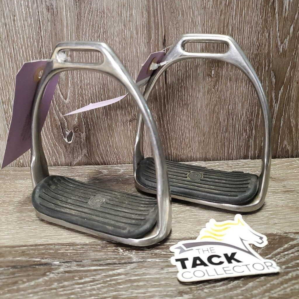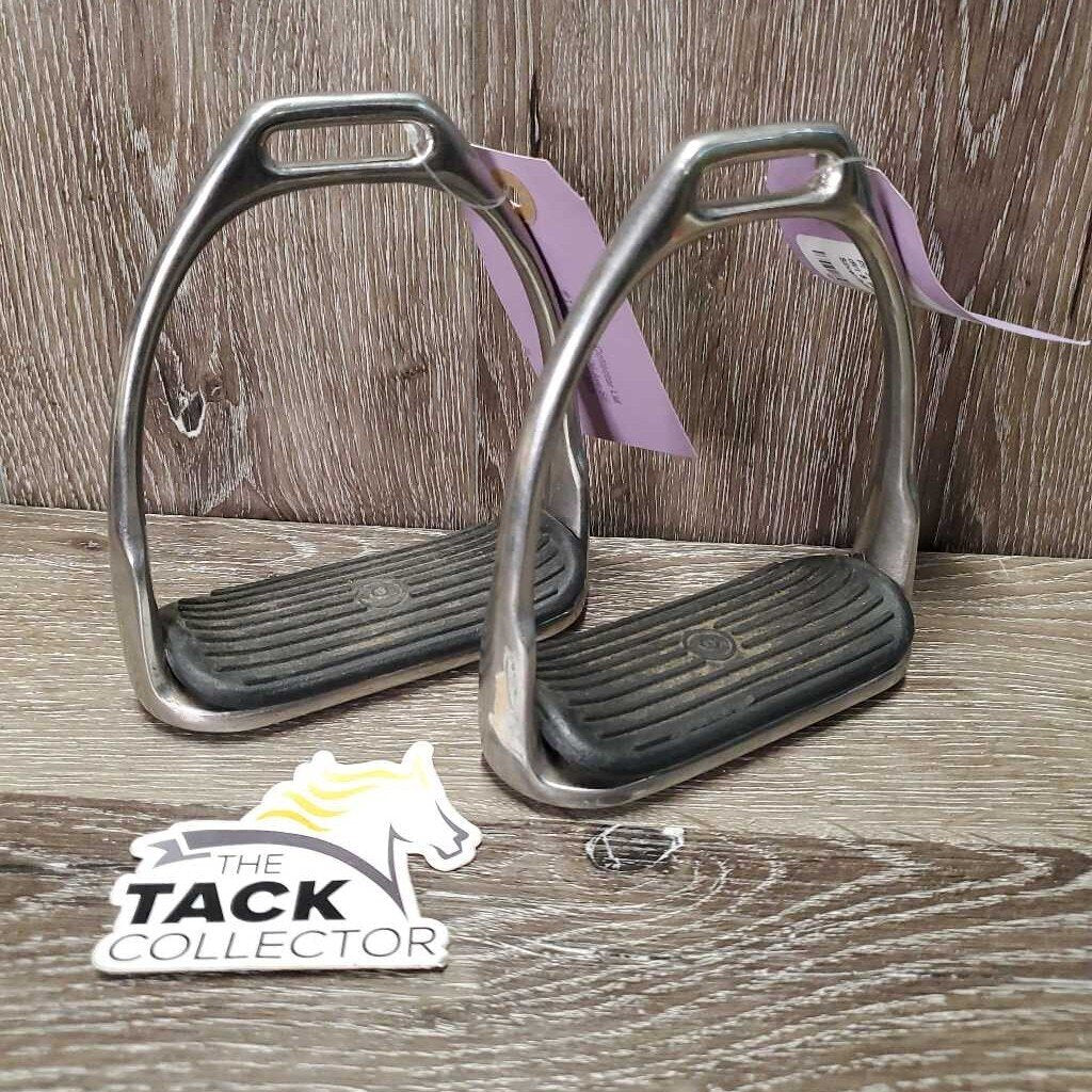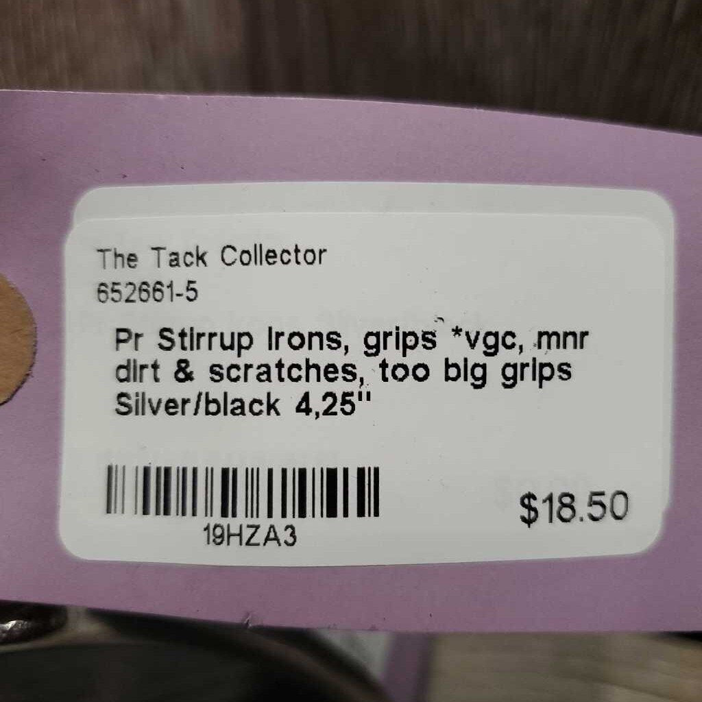 Pr Stirrup Irons, grips *vgc, mnr dirt & scratches, too big grips