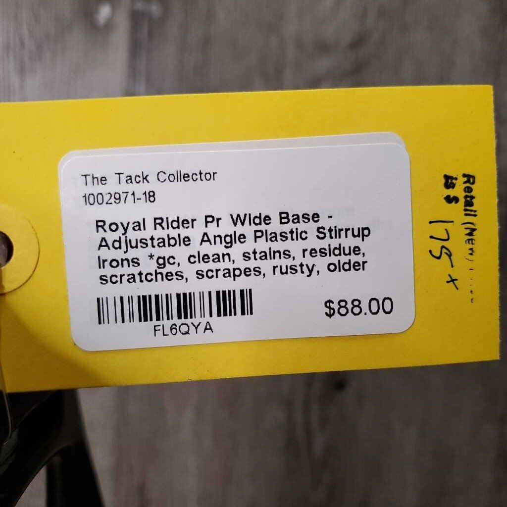 Pr Wide Base - Adjustable Angle Plastic Stirrup Irons *gc, clean, stains, residue, scratches, scrapes, rusty, older