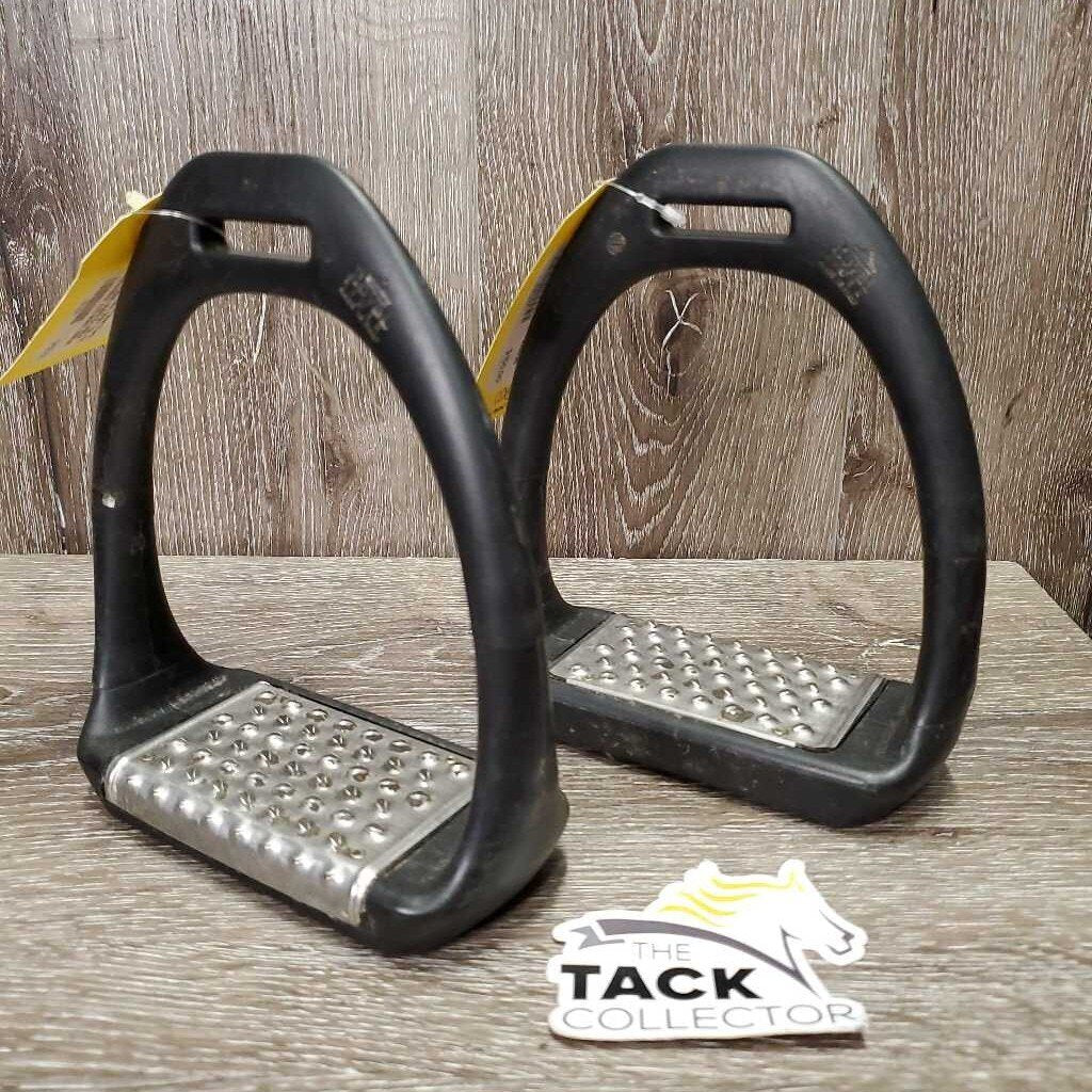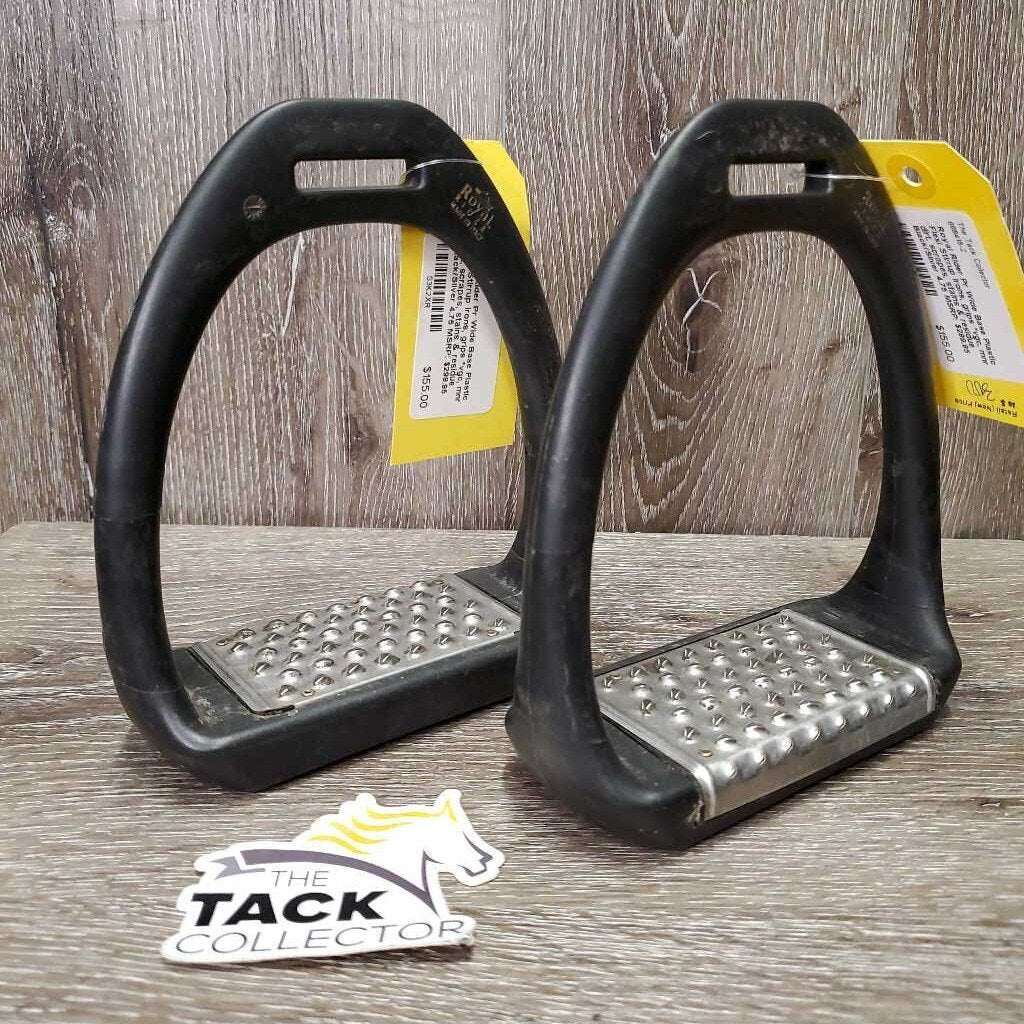 Pr Wide Base Plastic Flexi Stirrup Irons, grips *vgc, mnr dirt, scrapes, stains & residue