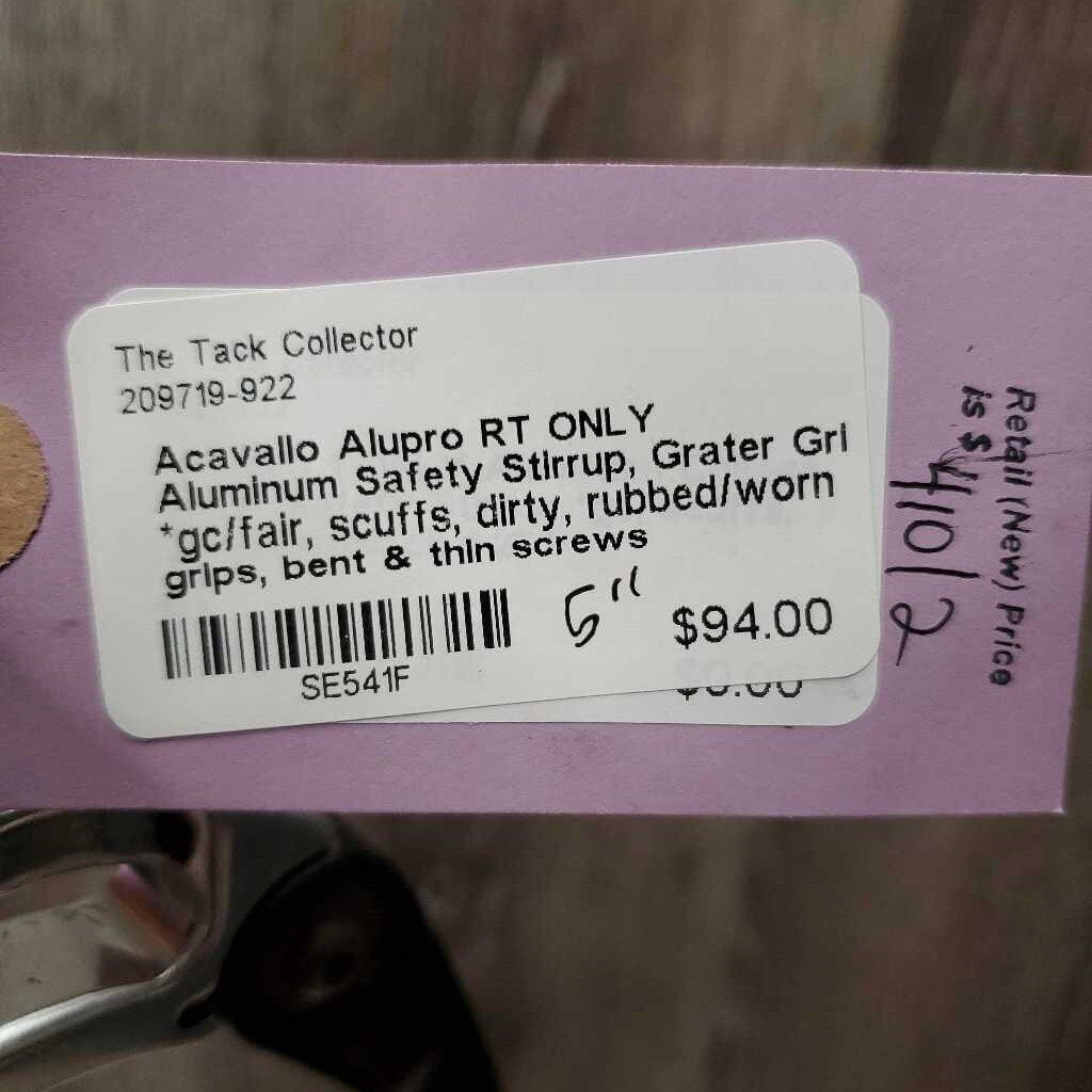 RT ONLY Aluminum Safety Stirrup, Grater Grip *gc/fair, scuffs, dirty, rubbed/worn grips, bent & thin screws