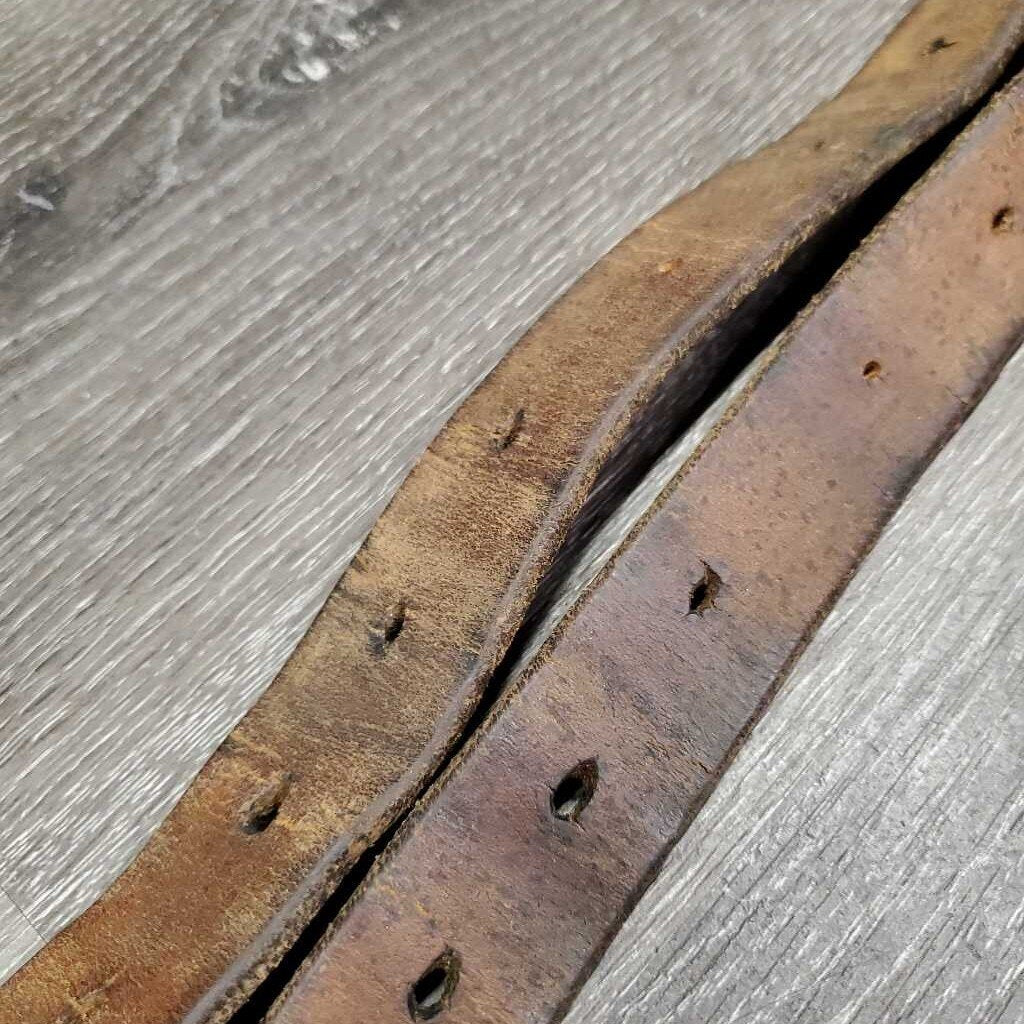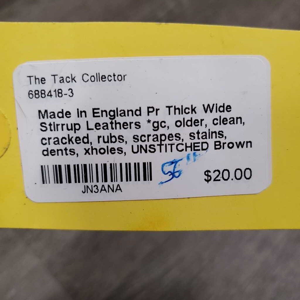 Thick Wide Stirrup Leathers *gc, older, clean, cracked, rubs, scrapes, stains, dents, xholes, UNSTITCHED