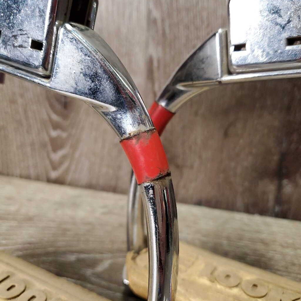 VINTAGE Safety Stirrup Irons, grips *gc, dusty, tape, film, residue, crumbling grips