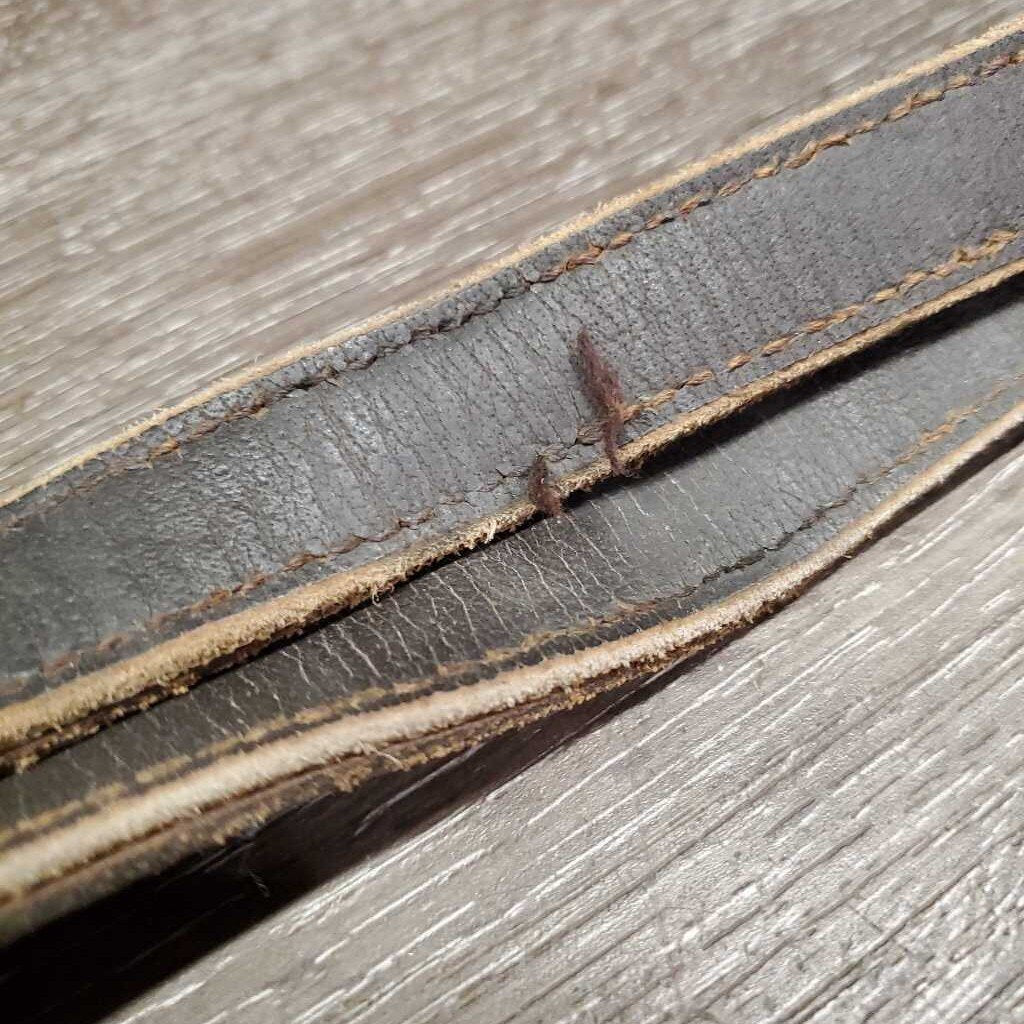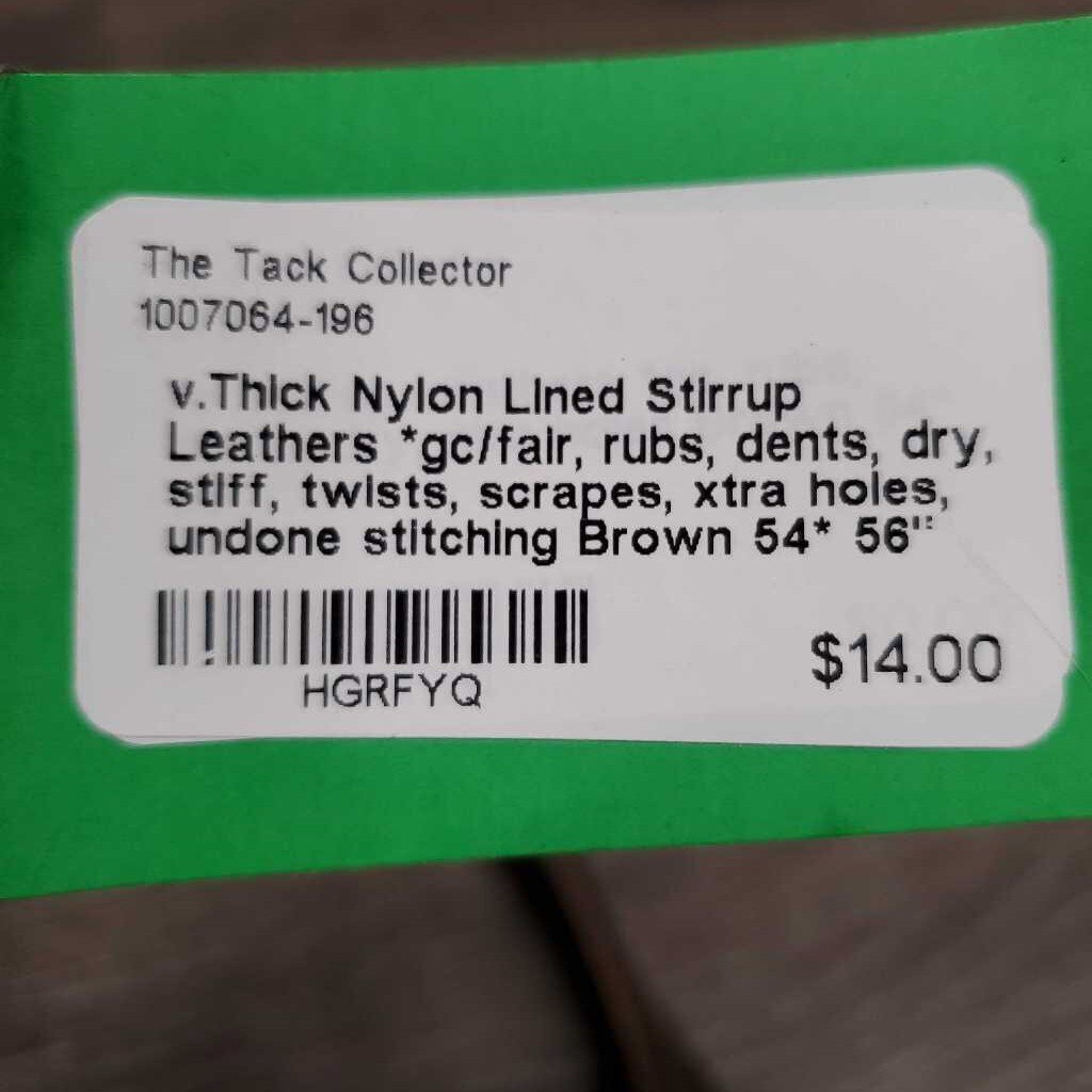 v.Thick Nylon Lined Stirrup Leathers *gc/fair, rubs, dents, dry, stiff, twists, scrapes, xtra holes, undone stitching