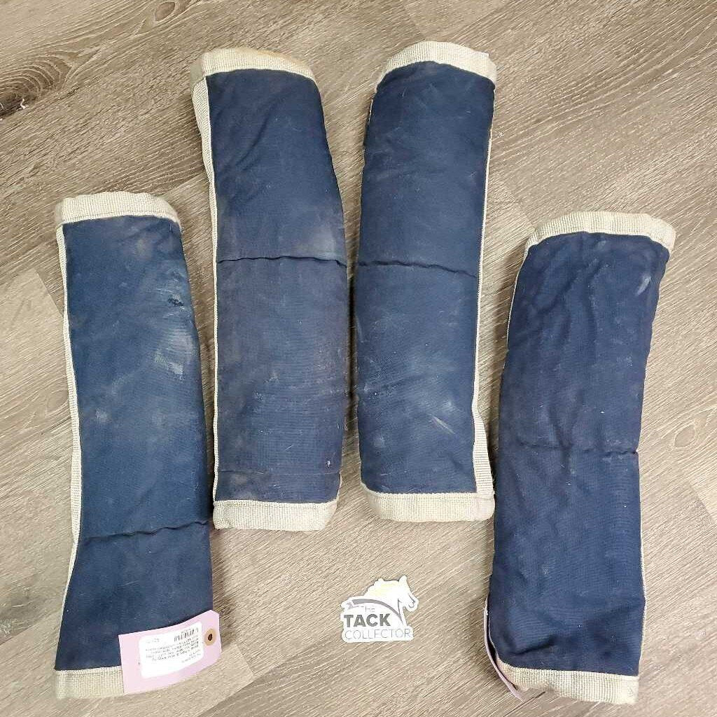 Front & Hind Shipping Boots *fair, older, mnr dirt?, faded, stains, holey edges, torn velcro, edge rubs/frays, unstitched seams