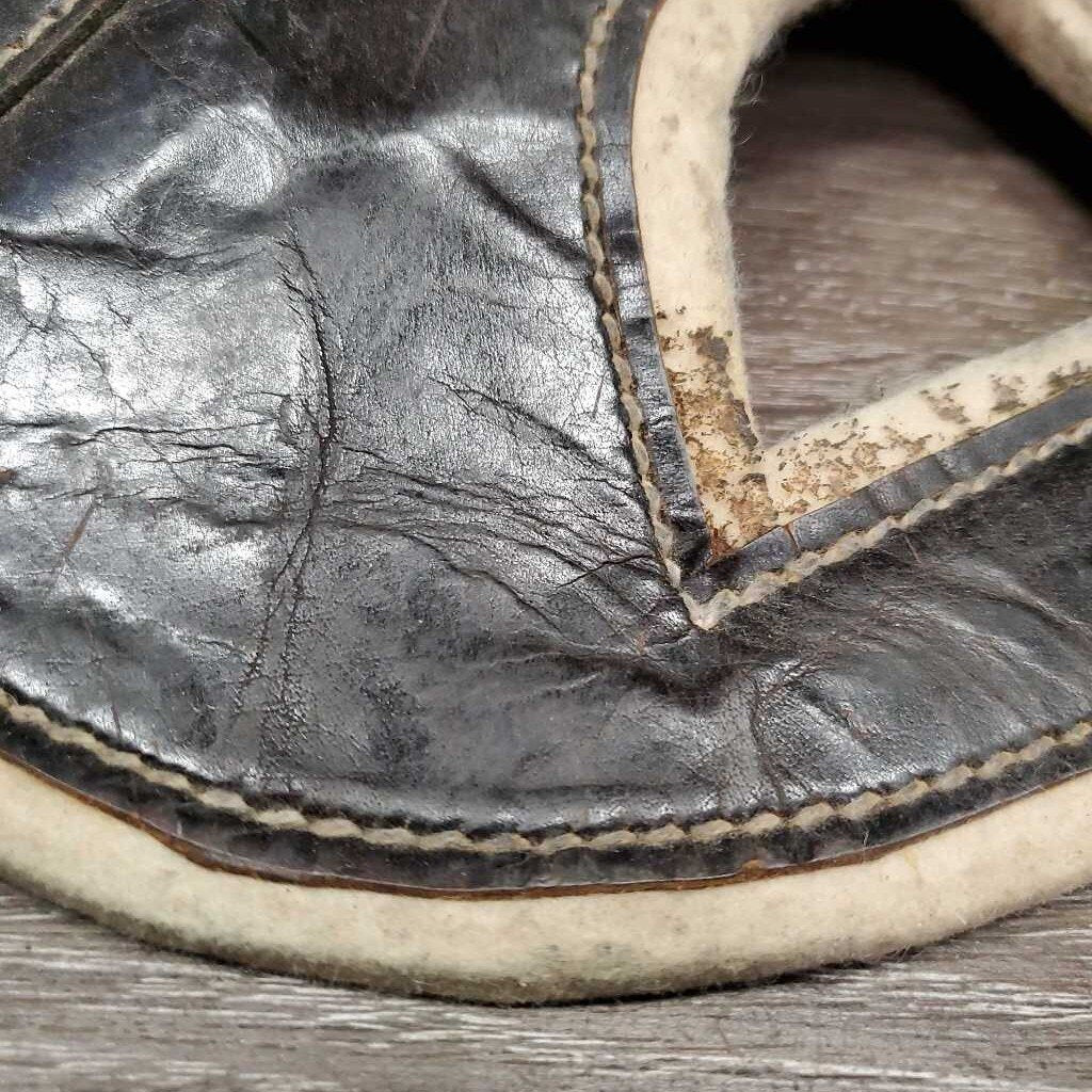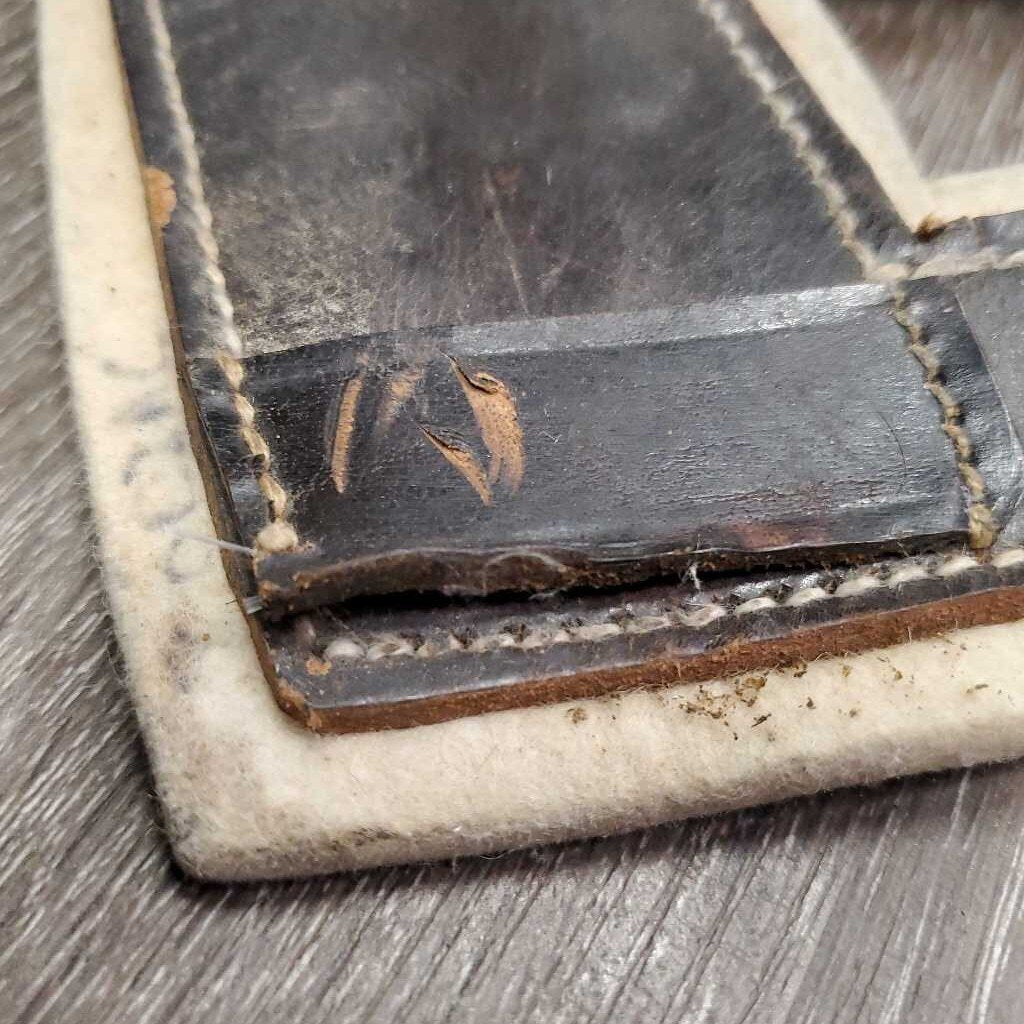Leather & Felt Poll Guard Head Bumper *gc/fair, dirty, scrapes, stains, slices marker, bubbled, loose stitch