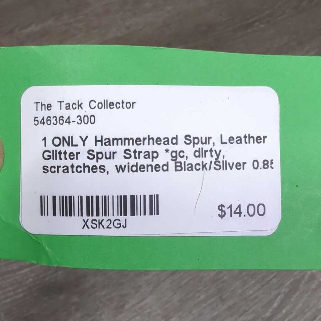 1 ONLY Hammerhead Spur, Leather Glitter Spur Strap *gc, dirty, scratches, widened
