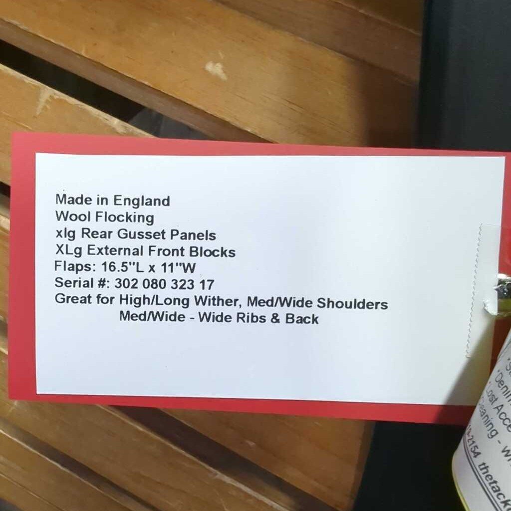 XC *v.mnr wear described as: Pommel: mnr rubs & scuffs Twist: seam rubs Seat: mnr rubs Skirt: mnr scratches Flaps: Top: mnr rubs, scratches-L Knee Roll Panels: mnr rubs, Front Piping-R: gouge Flocking: mnr uneven @ bars-L