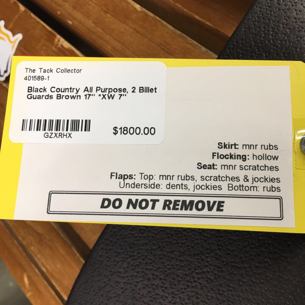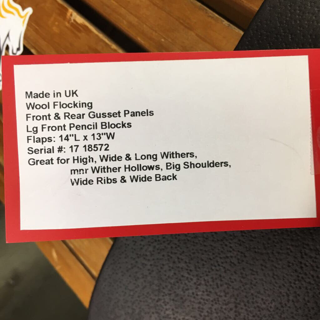 17" *XW 7" Black Country All Purpose, 2 Billet Guards, Wool Flocking, Front & Rear Gusset Panels, Lg Front Pencil Blocks, Flaps: 14"L x 13"W Serial #: 17 18572