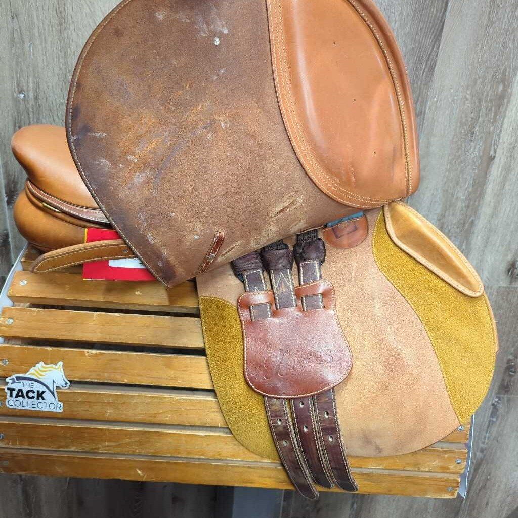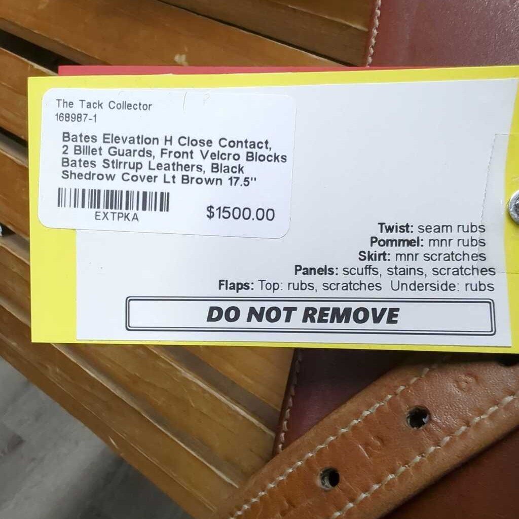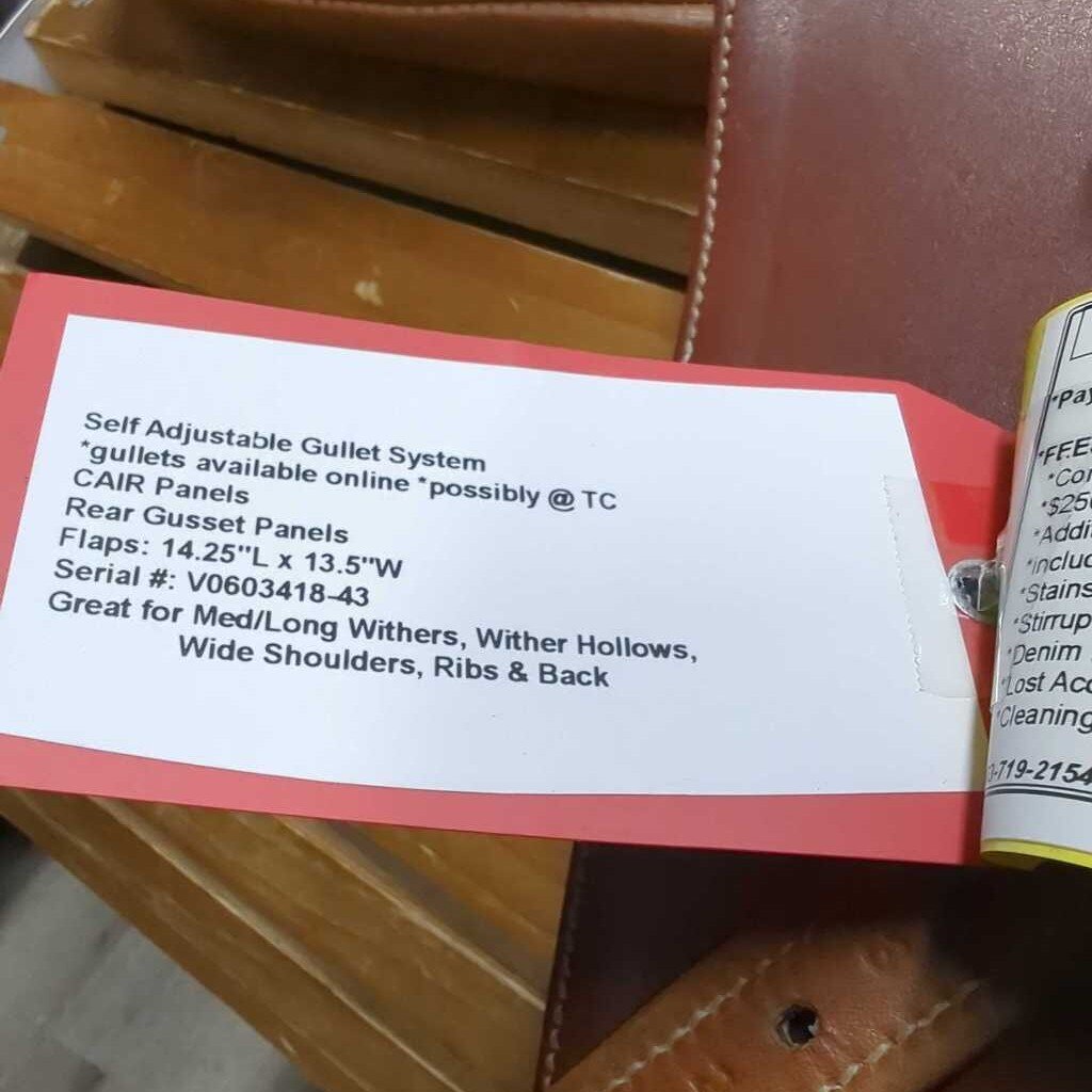 17.5" *Adj Med *Black Gullet In Bates Caprilli Close Contact, 2 Billet Guards, 2 Front Velcro Blocks, 2 Bates Stirrup Leathers, Black Shedrow Cover, CAIR Panels, Rear Gusset Panels, Flaps: 14.25"L x 13.5"W Serial #: V0603418-43