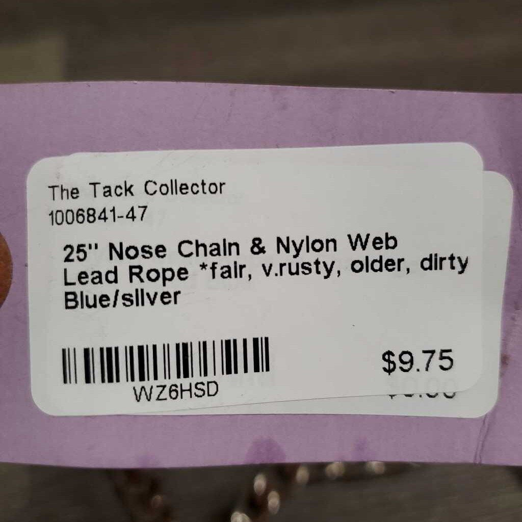 25" Nose Chain & Nylon Web Lead Rope *fair, v.rusty, older, dirty