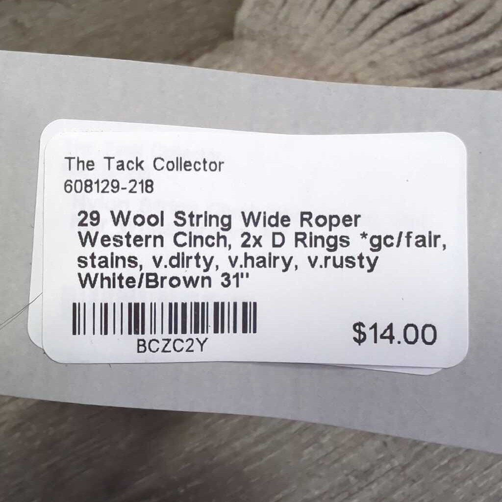 29 Wool String Wide Roper Western Cinch, 2x D Rings *gc/fair, stains, v.dirty, v.hairy, v.rusty