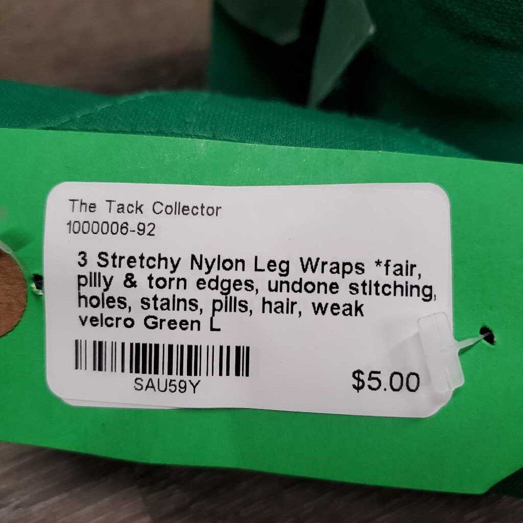 3 Stretchy Nylon Leg Wraps *fair, pilly & torn edges, undone stitching, holes, stains, pills, hair, weak velcro