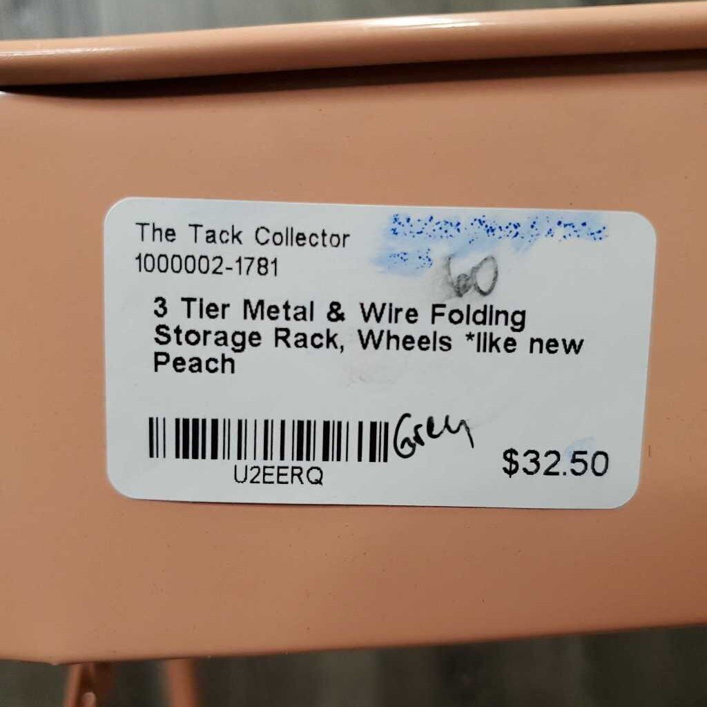 3 Tier Metal & Wire Folding Storage Rack, Wheels *like new
