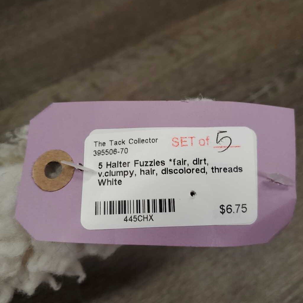 5 Halter Fuzzies *fair, dirt, v.clumpy, hair, discolored, threads